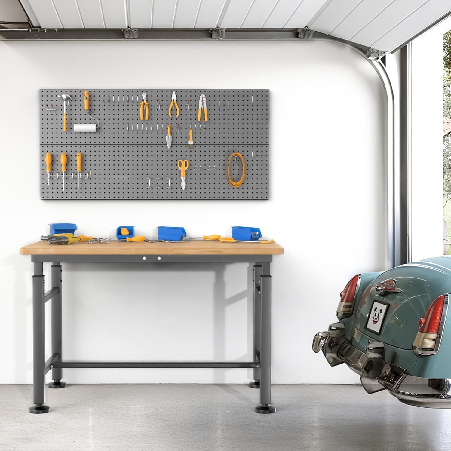 Heavy-Duty Load Capacity: Built with a solid rubberwood top and reinforced steel frame, this work bench supports up to 2000 lbs. Perfect for handling heavy tools, projects, and equipment with confidence