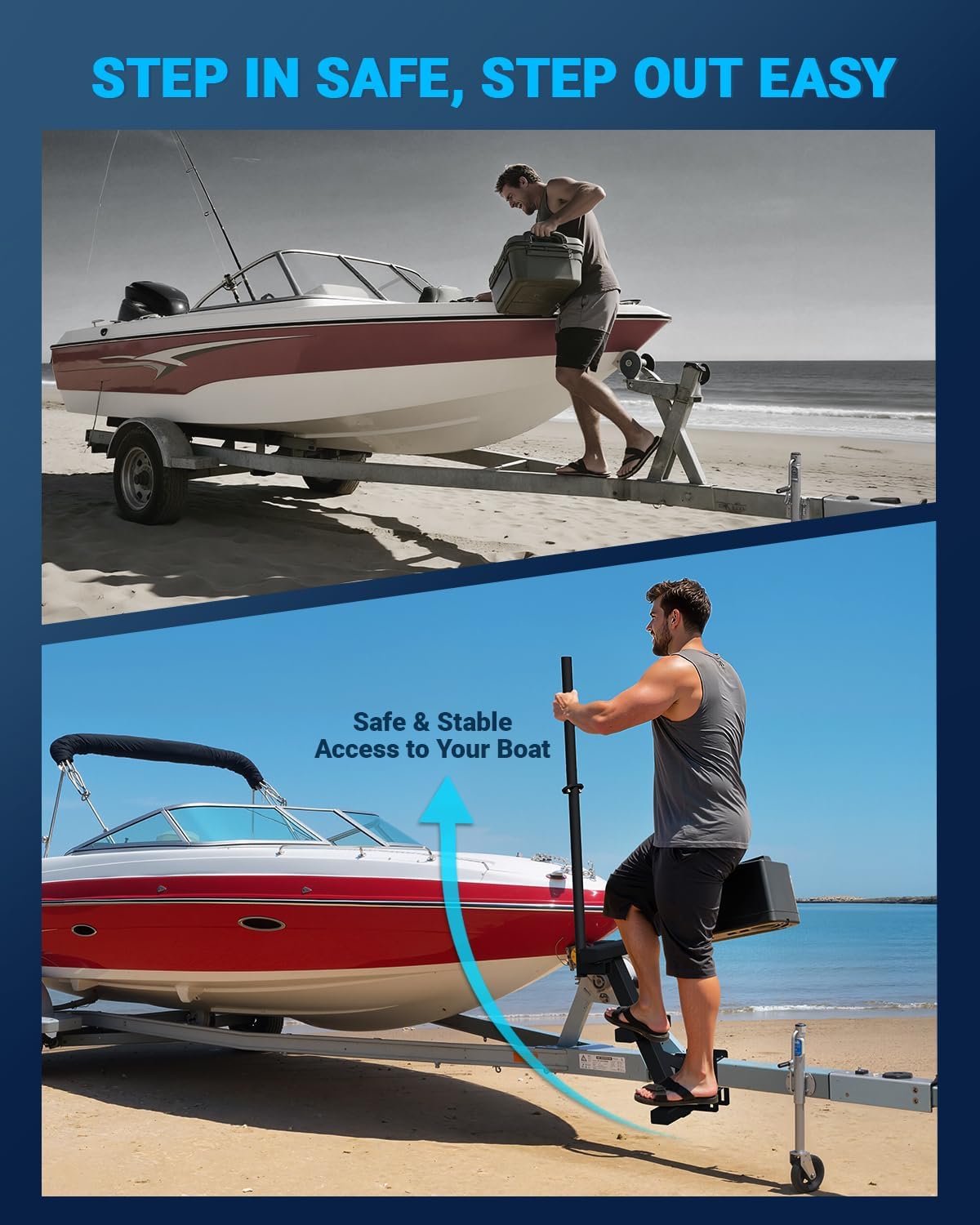 Safe & Stable Steps, Effortless Boarding - Heavy-duty steel boat trailer steps, 300-350 lb rated, ensuring confident boarding every launch.