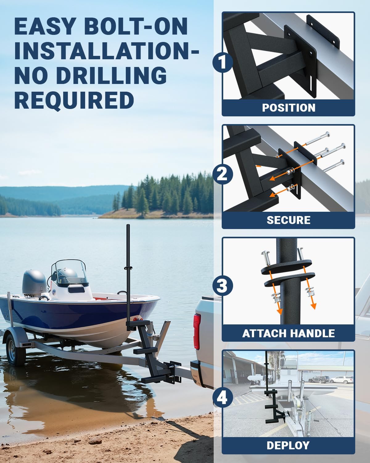 Compact & Always Ready - Your trusted launch companion,these boat trailer steps stay bolted tight—no folding, no wobble, from tow, launch and park, our steps ensure easy, reliable access for every boating adventure.