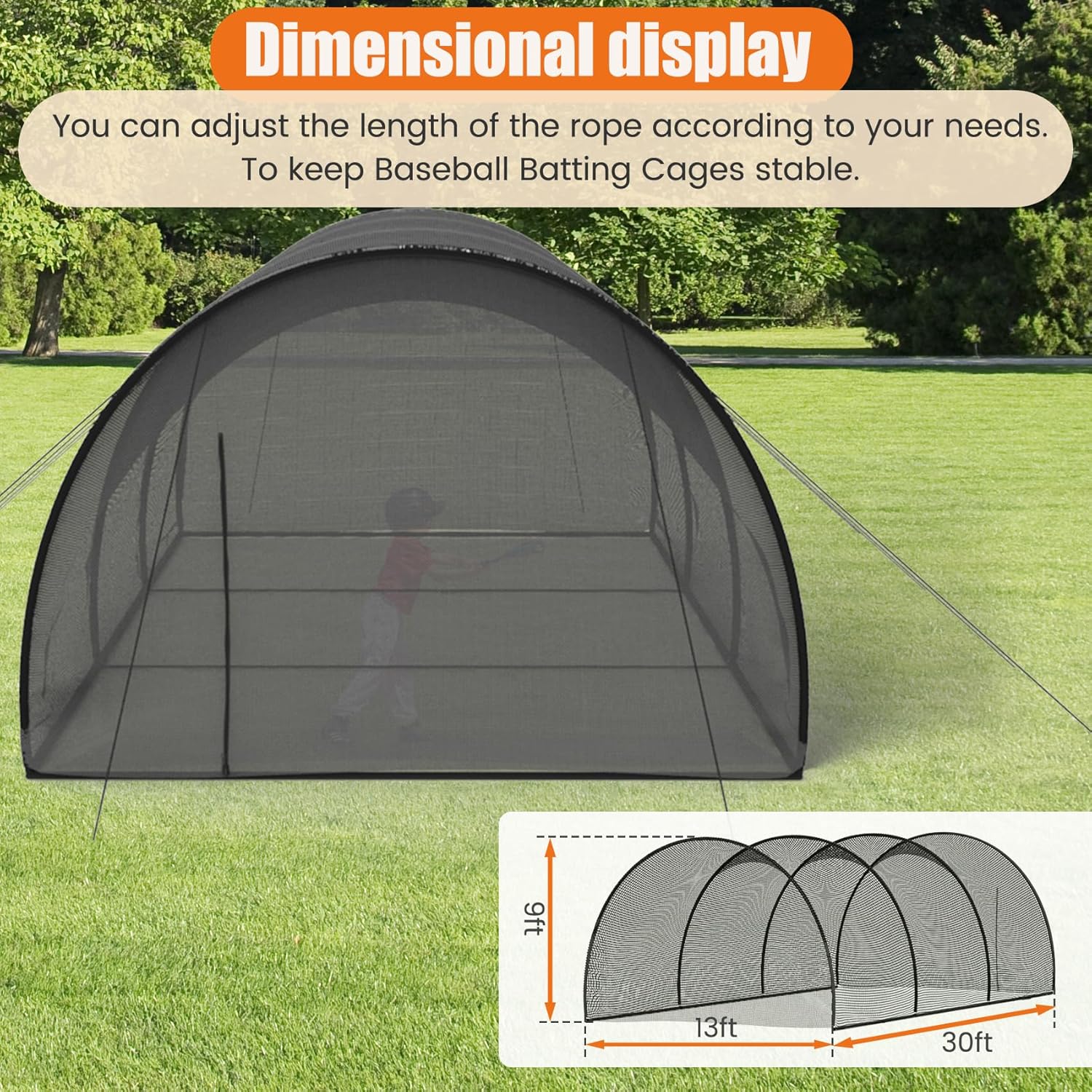 Step Into Your Pro Training Ground: Dominate the plate in our 30x13x9FT large-scale backyard batting cage – the elite training ground where sports enthusiasts, fitness coaches, and pro trainers sharpen baseball/softball skills with game-ready intensity.