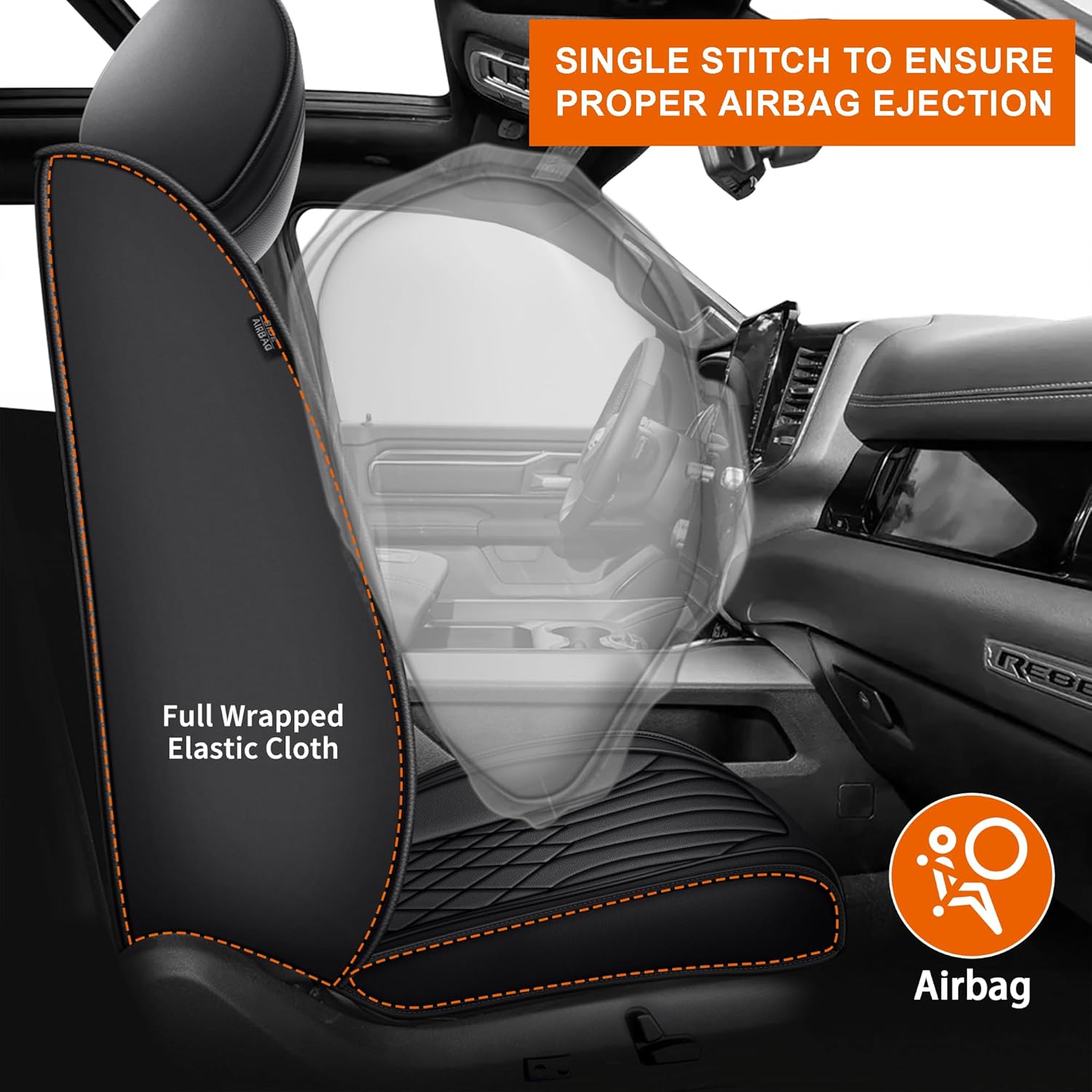 Front Seat Covers, Fit for Dodge RAM1500 2500 3500 2002-2025, Waterproof and Non-Slip Faux Leather
