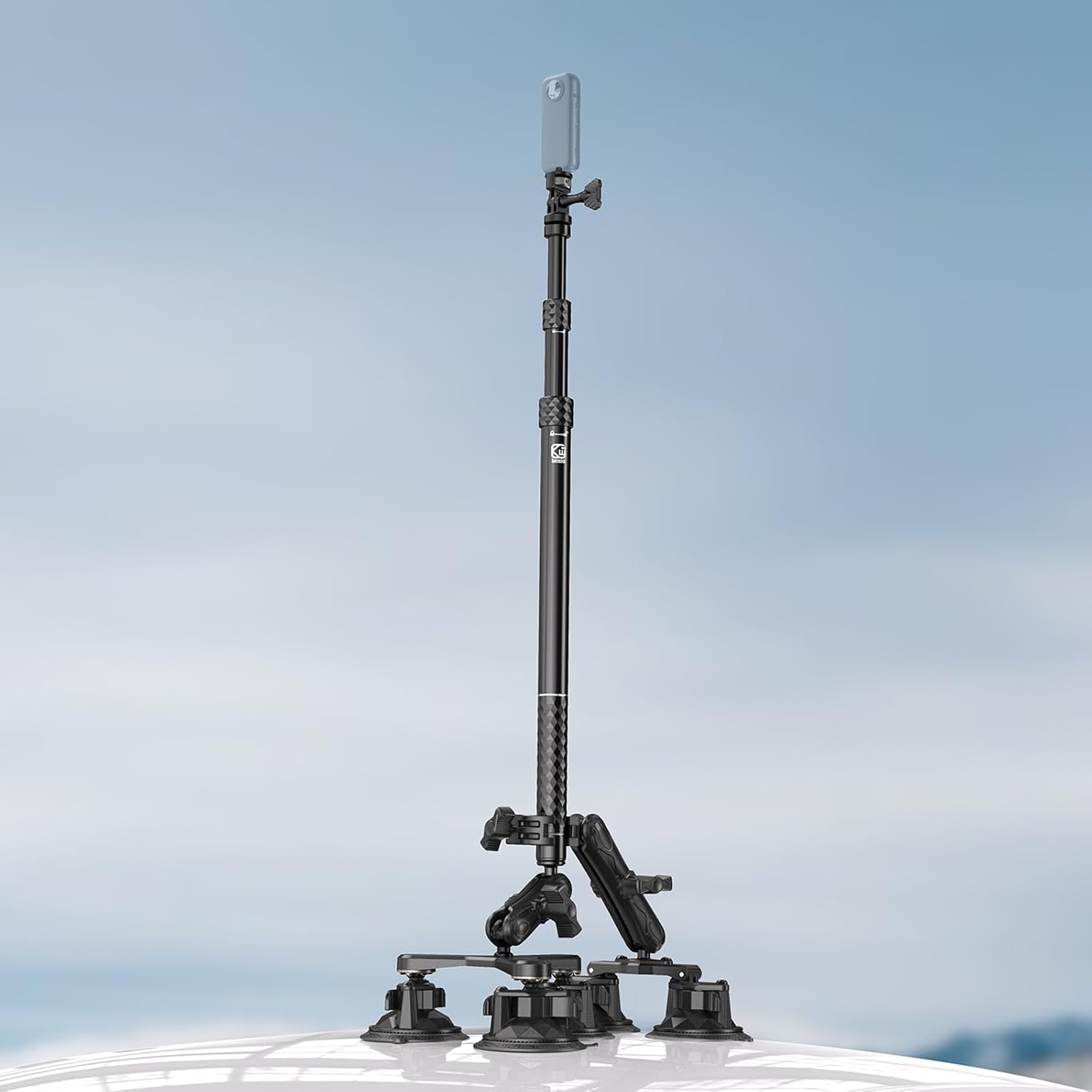 Five Suction Cup Car Mount with Aluminum Alloy Extendable Selfie Stick, 3.5' Twist-Lock Large Suction Cup Car Camera