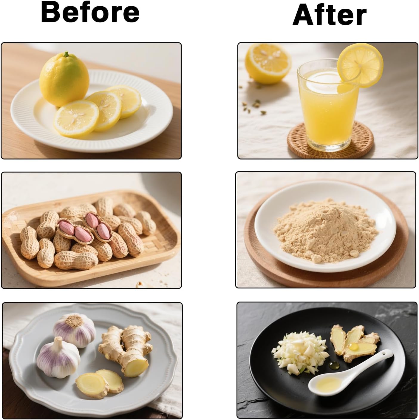 Child-friendly design: The ergonomic juicer and blender with anti-slip handles ensure safety, making it convenient for children to help out at the lemonade stand and easily press garlic in the kitchen