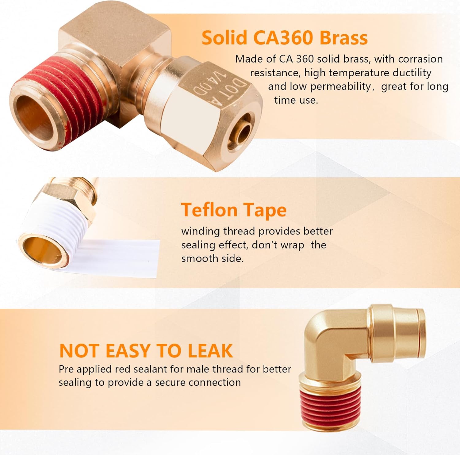 220PCS DOT FITTINGS SET: 15Pcs DOT push-to-connect fittings:6pcs 90°male elbow,3pcs union,6pcs straight male connector .140Pcs DOT compression nylon fittings:5pcs 90°male elbow,6pcs union connector,3pcs union tee,5pcs straight male connector, 115pcs sleeve ferrules,2pcs compression Fitting,4pcs bushing. 64Pcs Brass pipe fittings:8Pcs NPT Female Coupling, 8pcs close nipple,24pcs Hex Countersunk Plug,8pcs NPT Cored Hex Head Plug ,8Pcs NPT Reducing Hex Nipple,8Pcs Bulkhead Nut;1pc 4m teflon tape