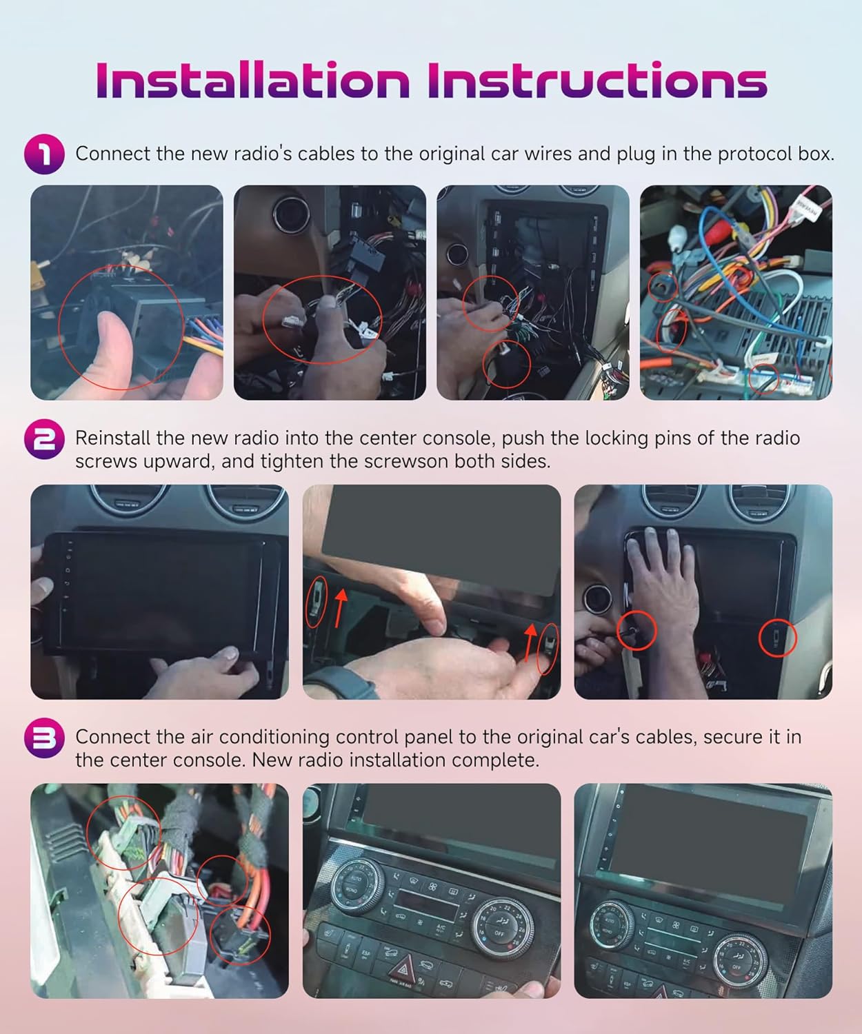 AHD Reversing Camera & Steering Wheel ControlFor Mercedes GL450 Car Radio Carplay with AHD reversing camera, with easy installation and operation. When the car is reversing, the car radio screen automatically displays the reverse image and records the traffic daily reversing, safer and more convenient. Car Radio Android Support steering wheel control, so you can control the functions you need through the steering wheel, which is more convenient.