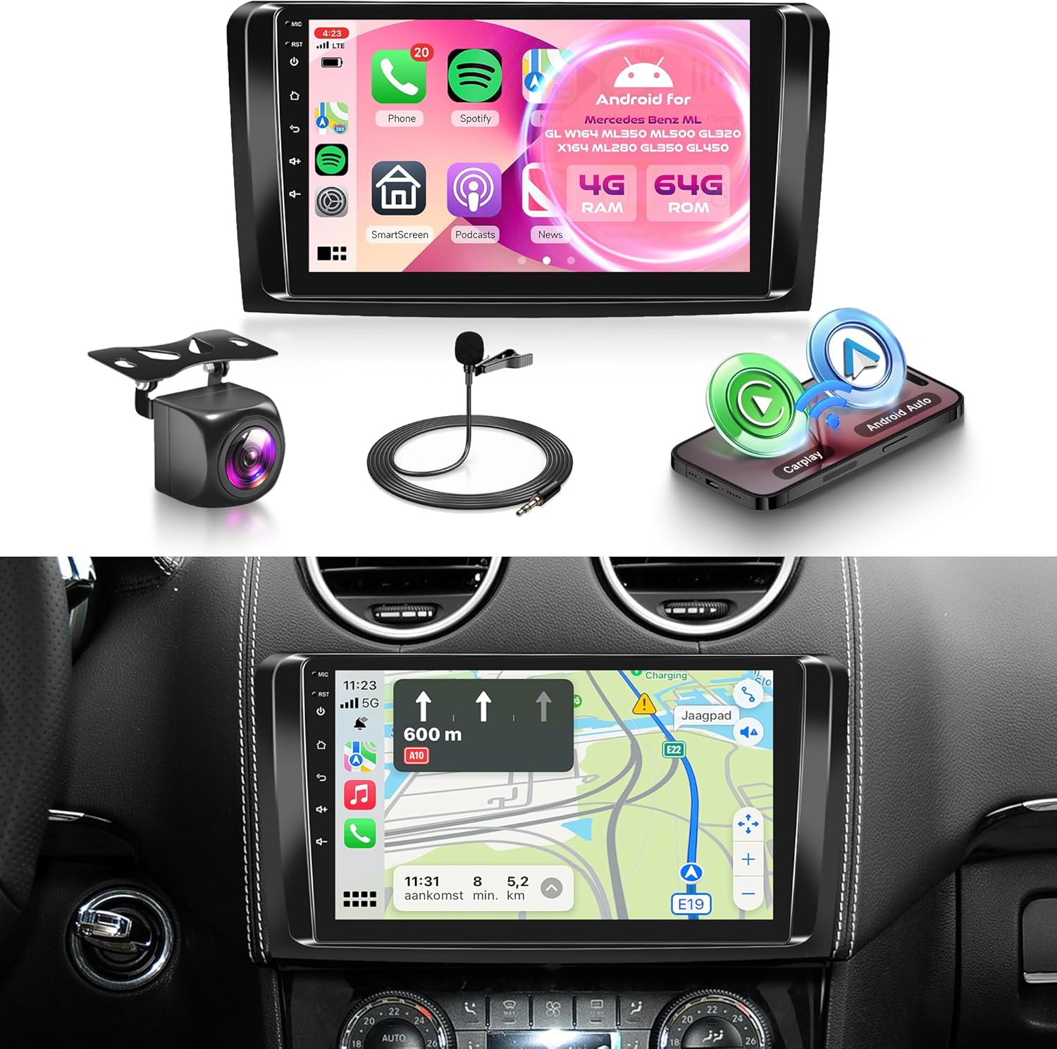 4G+64G 9 Inch Touchscreen Android Car Radio for Mercedes W164 ML350Compatible vehicles: for Mercedes-Benz M-Class W164 2005 - 2012; für Mercedes-Benz ML 280/ML 300/ML 320/ML 350/ML 420/ML 450/ML 500/ML 63; für Mercedes-Benz GL-Class X164 2005 - 2012; für Mercedes-Benz GL 320/GL 350/GL 420/GL 450/GL 500(Please make sure your model and year are suitable before purchase, if you are not sure if it is compatible you can contact us to confirm for you. Note: If your car has fiber optic, you need to buy additional ``Optical Fiber Box`` ). This radio with 9 inch 1080P HD capacity touch screen. Memory 4 GB (RAM) + 64 GB (ROM). Car radio with canbus for real-time synchronization of car information.