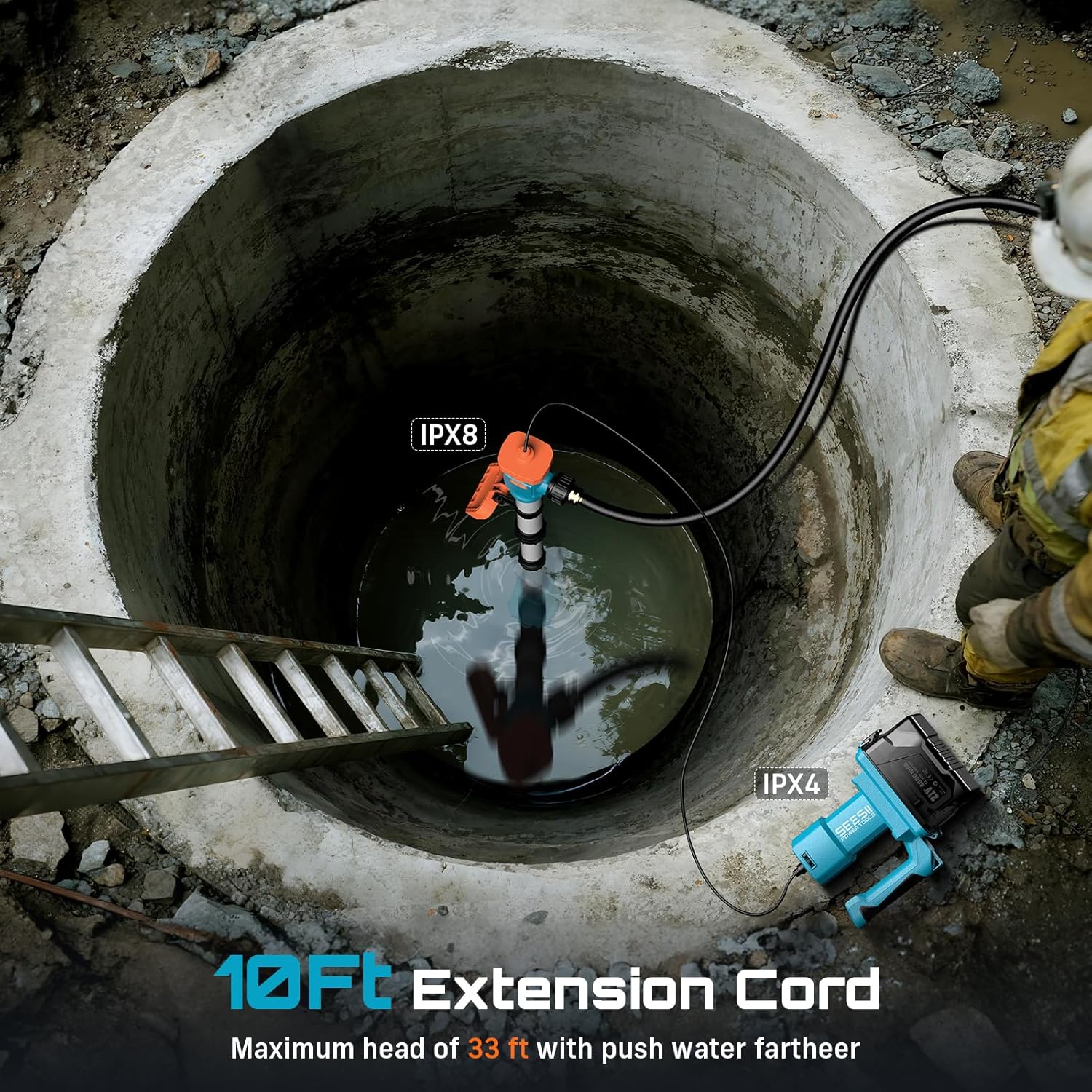 Upgraded Versatile Design: Detach the battery compartment for portable operation. The included 10-ft waterproof extension cable expands this SEESII water pump’s reach to confined spaces like basements, crawl spaces, or boats. Handle urgent water issues anywhere—safely and efficiently.