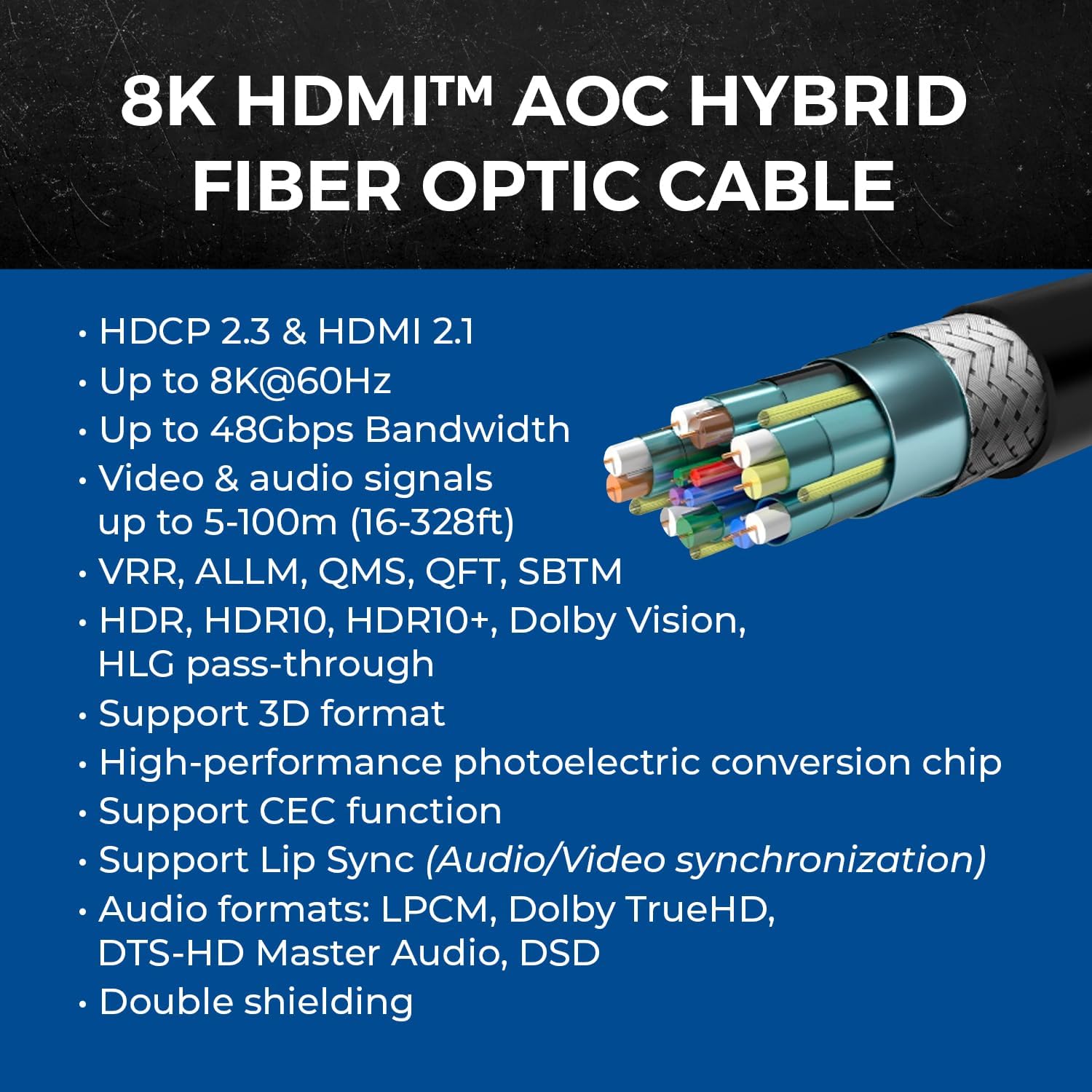 8K HDMI 2.1 Cable 150ft AOC Active Optical Fiber HDMI Cable, 48Gbps, 8K@60Hz, 4K@120Hz, HDR10+, eARC,