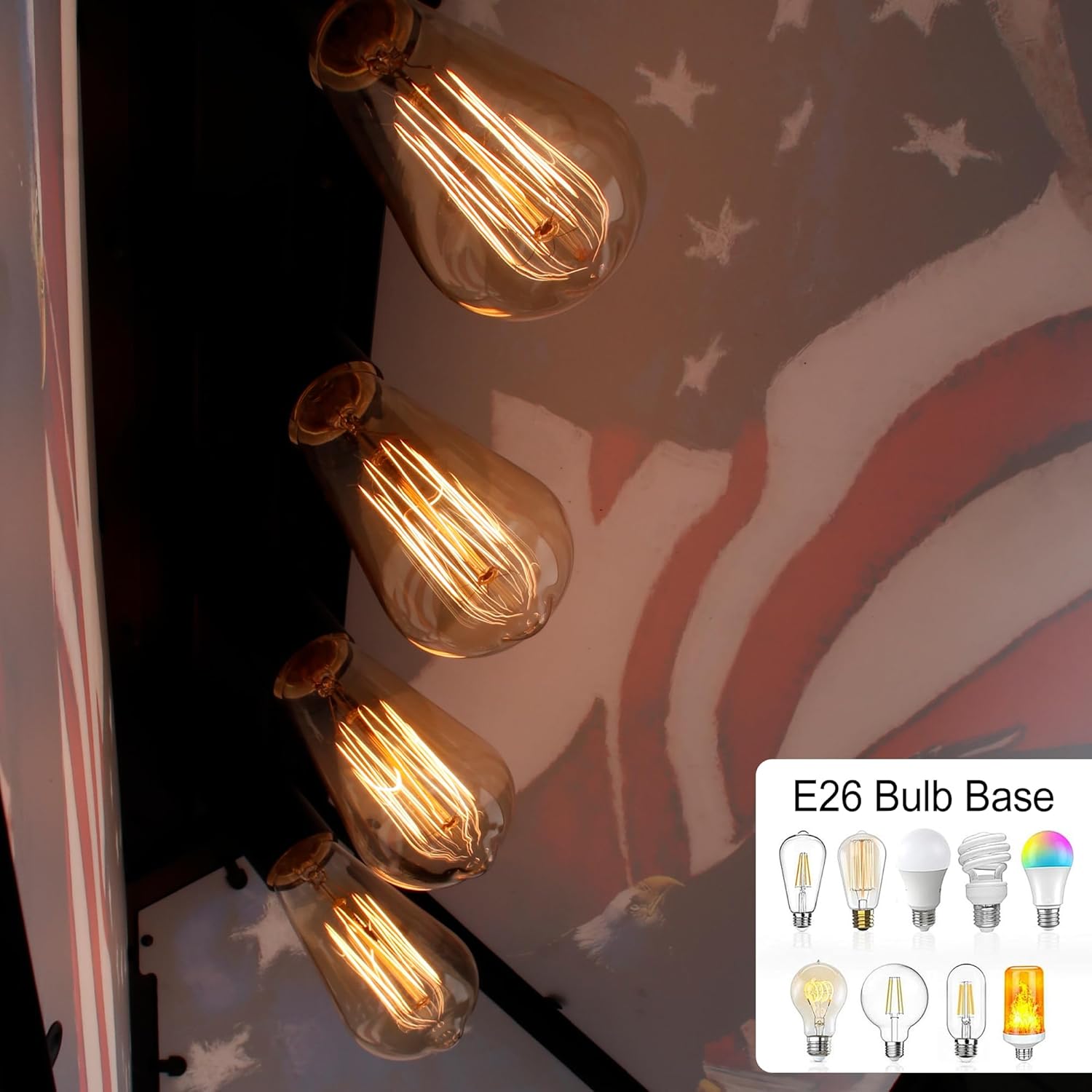 Powerful 4-Lamp Head & American Flag Design Equipped with 4*E26 standard lamp heads, you can freely adjust the bulbs (bulbs are sold separately) to provide uniform and bright top-level lighting. The lampshade is made of high-transmittance acrylic material and clearly printed with the classic American flag pattern. The soft and even light creates a professional and American retro style competitive atmosphere for your pool table.