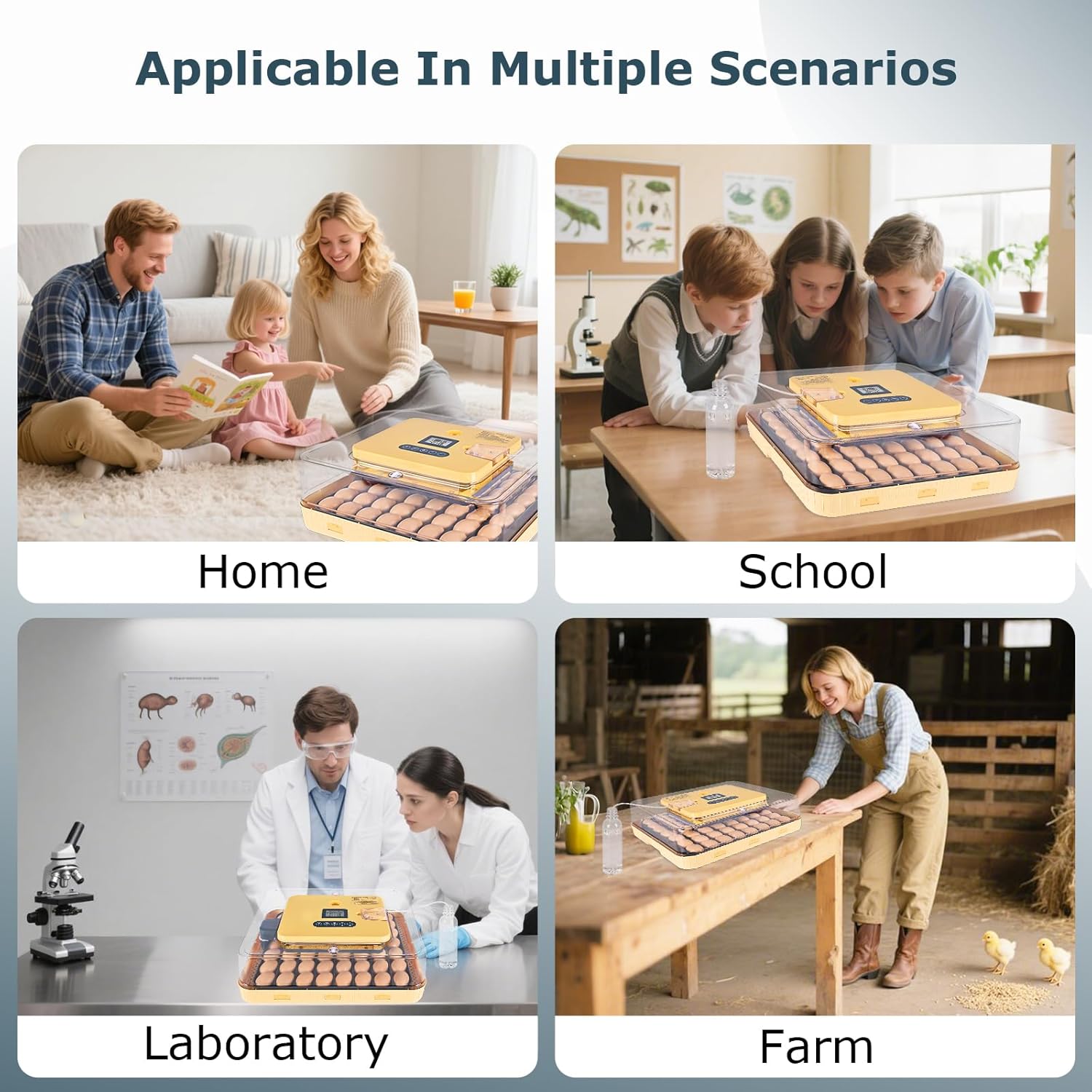 Multi-functional Incubator: innhom egg incubator is versatile and perfect for hatching eggs of various poultry species, such as, chicken, duck, goose, pigeon, quail, bird and snake eggs. A great multi-functional chicken egg incubator fully automatic for farms, education, Lab and home use.