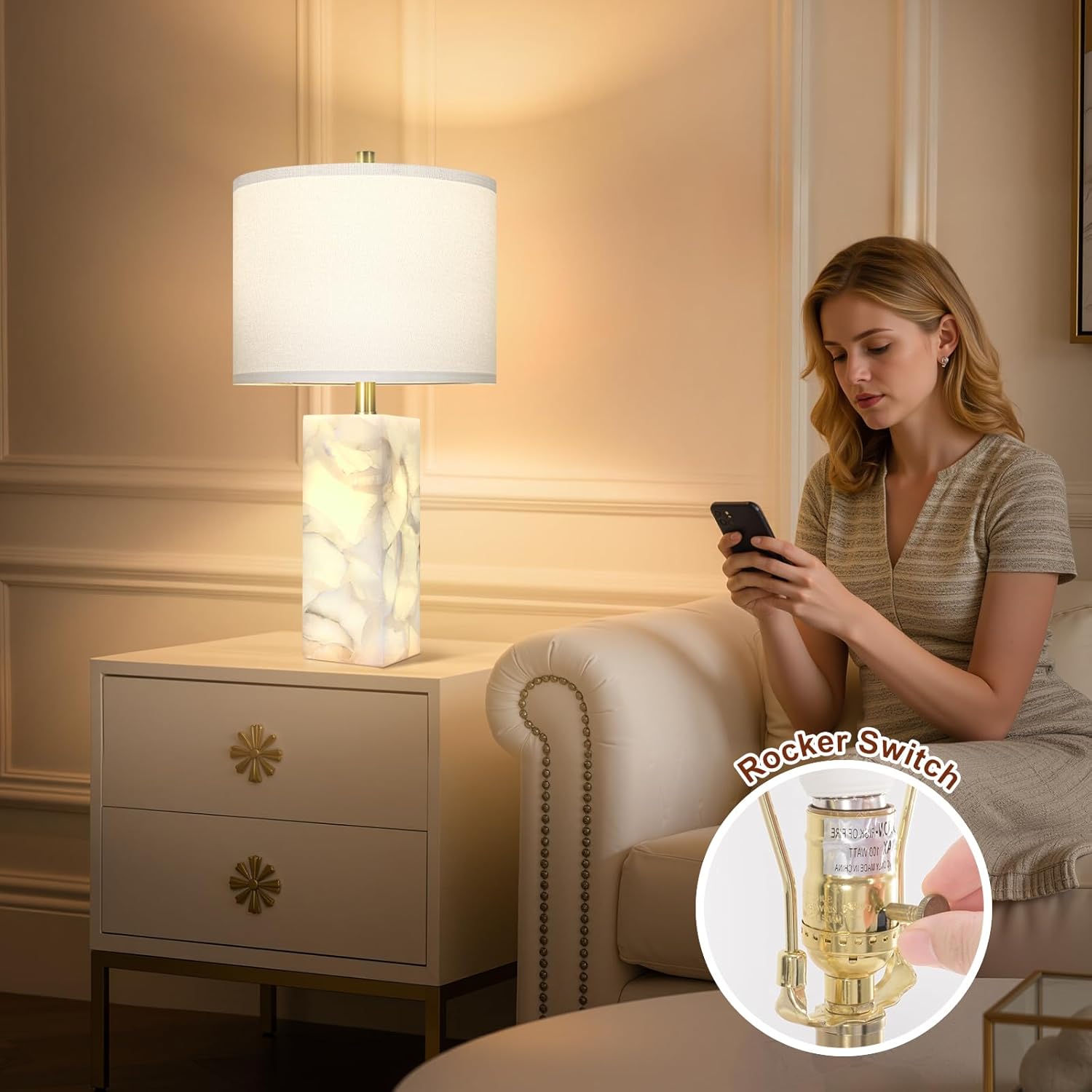 SUITABLE FOR MOST PLACES: Natural alabaster bedside lamp, handcrafted. Not only used in bedroom, living room, study room, dorm, office, great partner for nightstand, bedside etc. Also great for home decor, room decor, excellent practical nightstand lamp