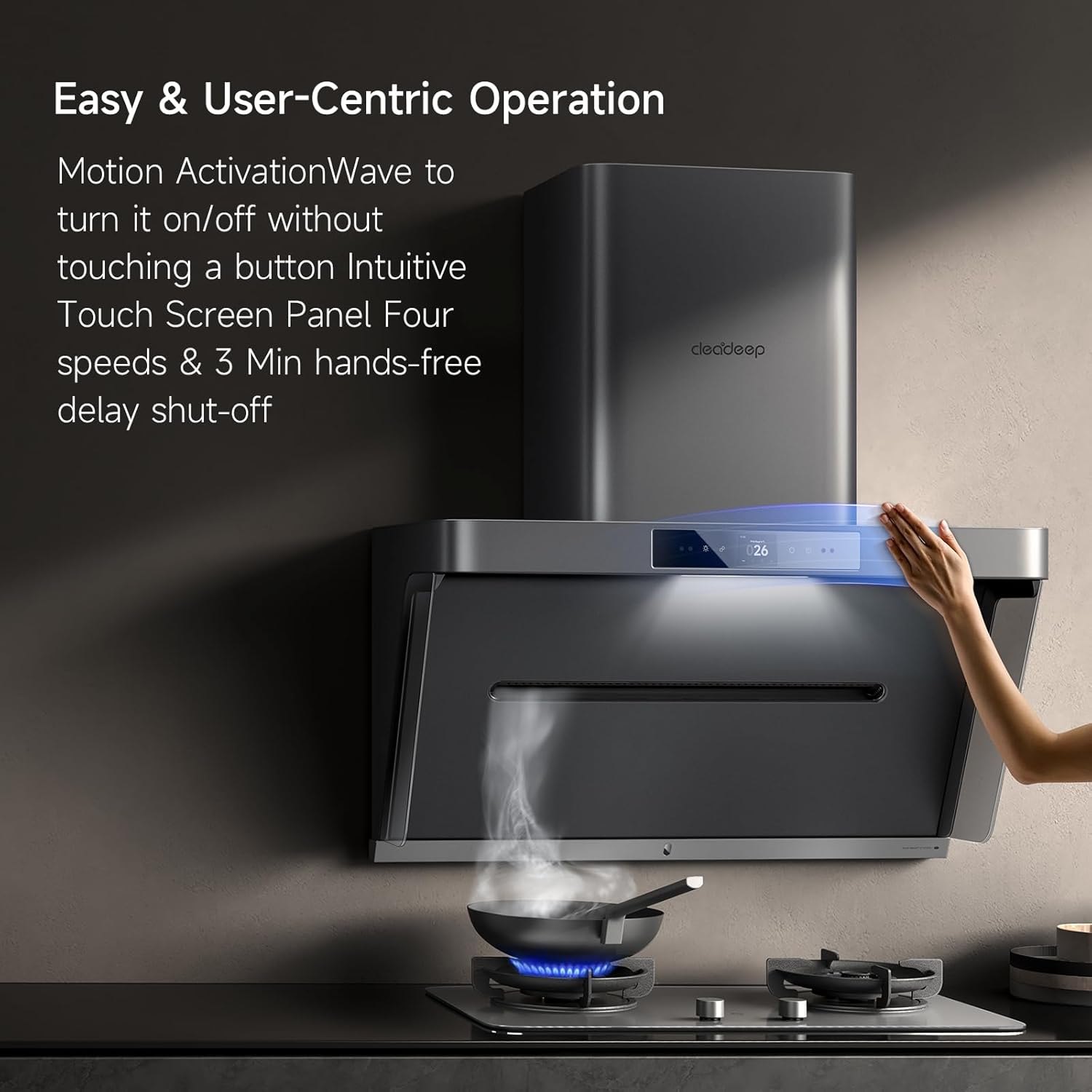 Range Hood with Easy Controls: Wave your hand to easily change gears. Adopting the new generation of gesture sensing technology, it can easily capture subtle command movements and recognize multiple gestures, making the product easy to operate.