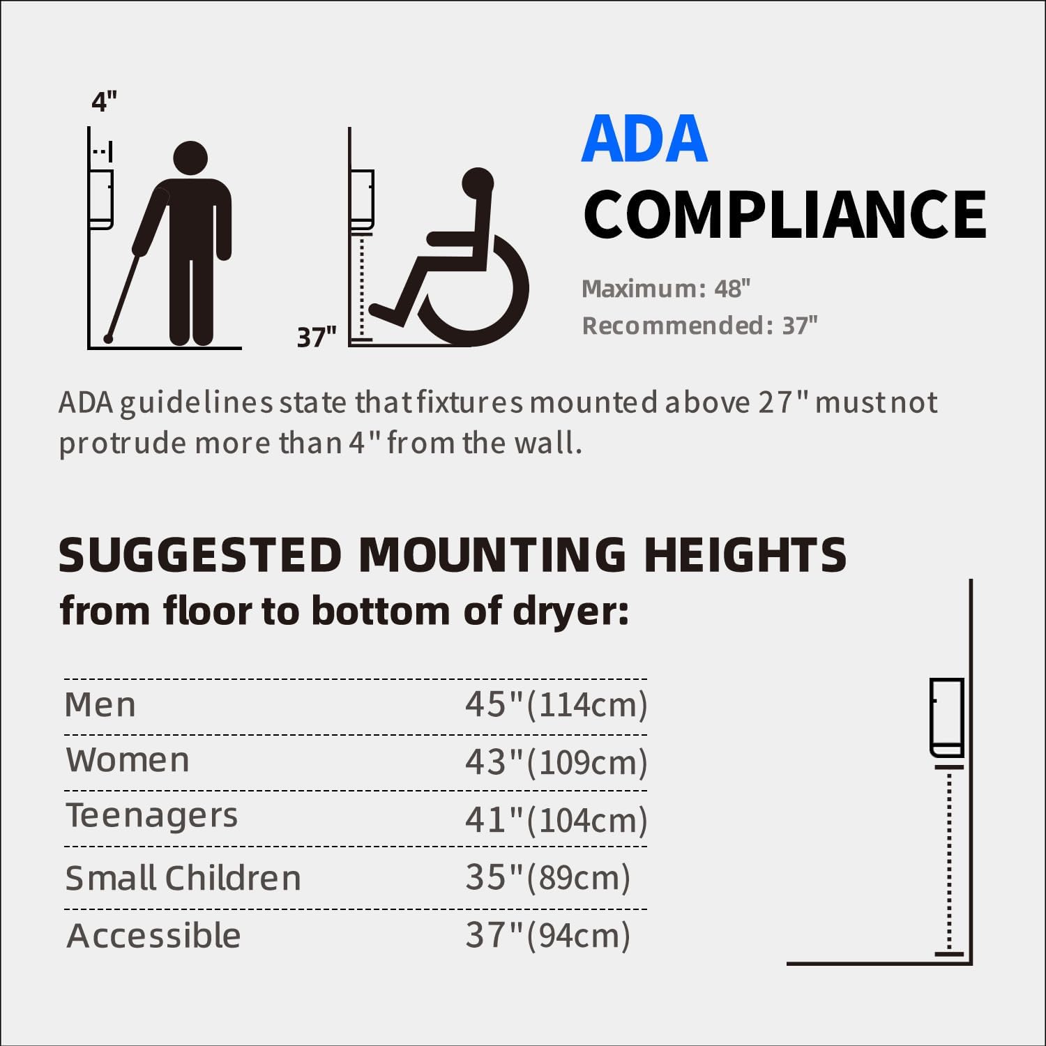 ADA Compliant Hand Dryer, ABS Plastic Cover Hard Wired Design, AC 110V-130V JW2825 (Silver)