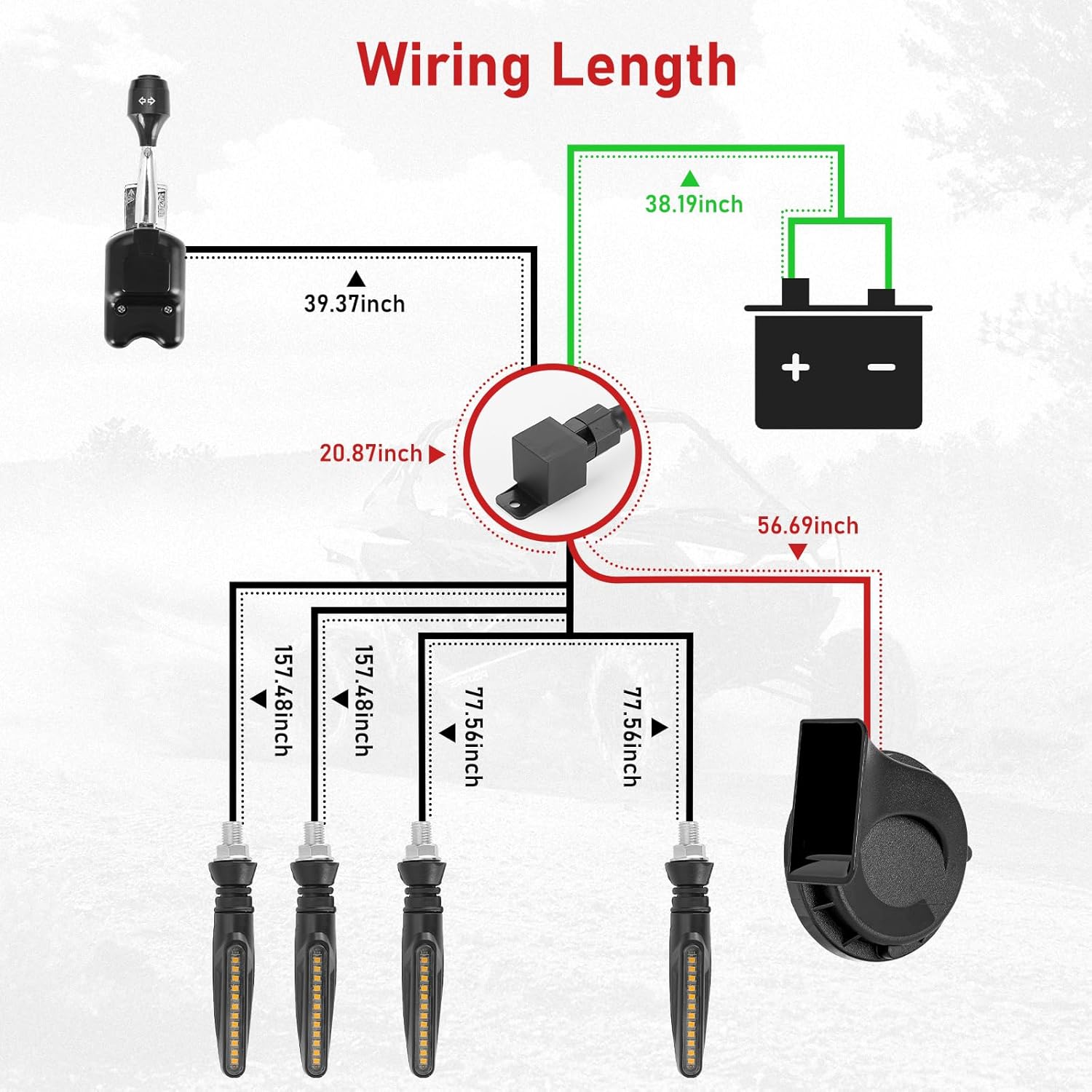 Column Switch for Ease of Use: The sxs turn signal kit come with column-mounted turn signal switch is designed for optimal comfort and convenience. Positioned for easy reach, the switch allows you to activate the turn signals and horn without having to look down, ensuring that your hands remain on the wheel. This design mimics the switch functionality found in most cars, offering a familiar and seamless user experience.