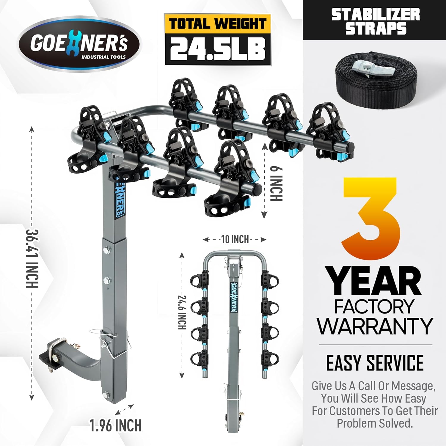 3-Year Warranty & Reliable Support - Backed by a 3-year factory warranty, this hitch rack is built to last. If you have any questions or concerns, our team is ready to assist you. Drive with confidence knowing your bike rack is engineered for durability and performance.