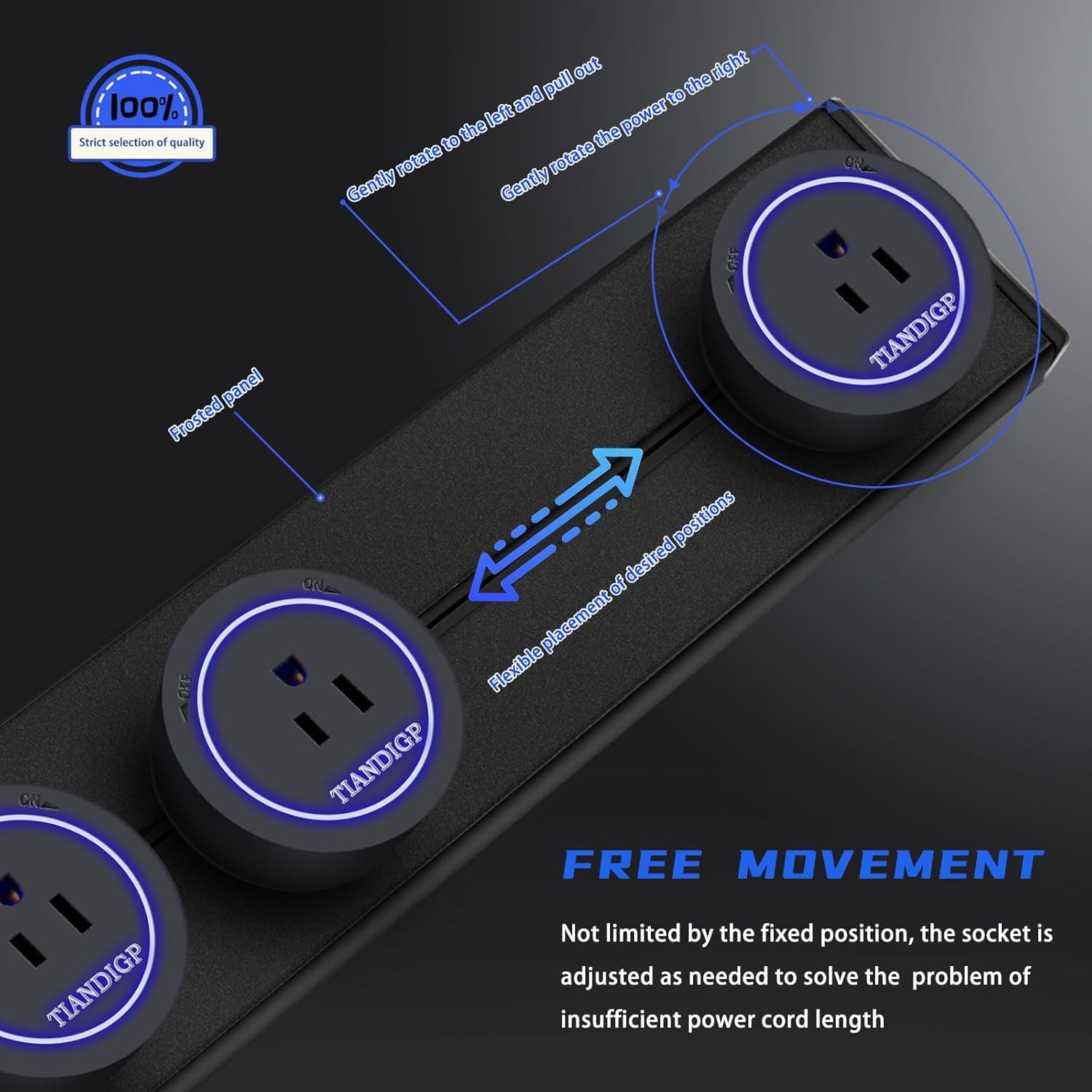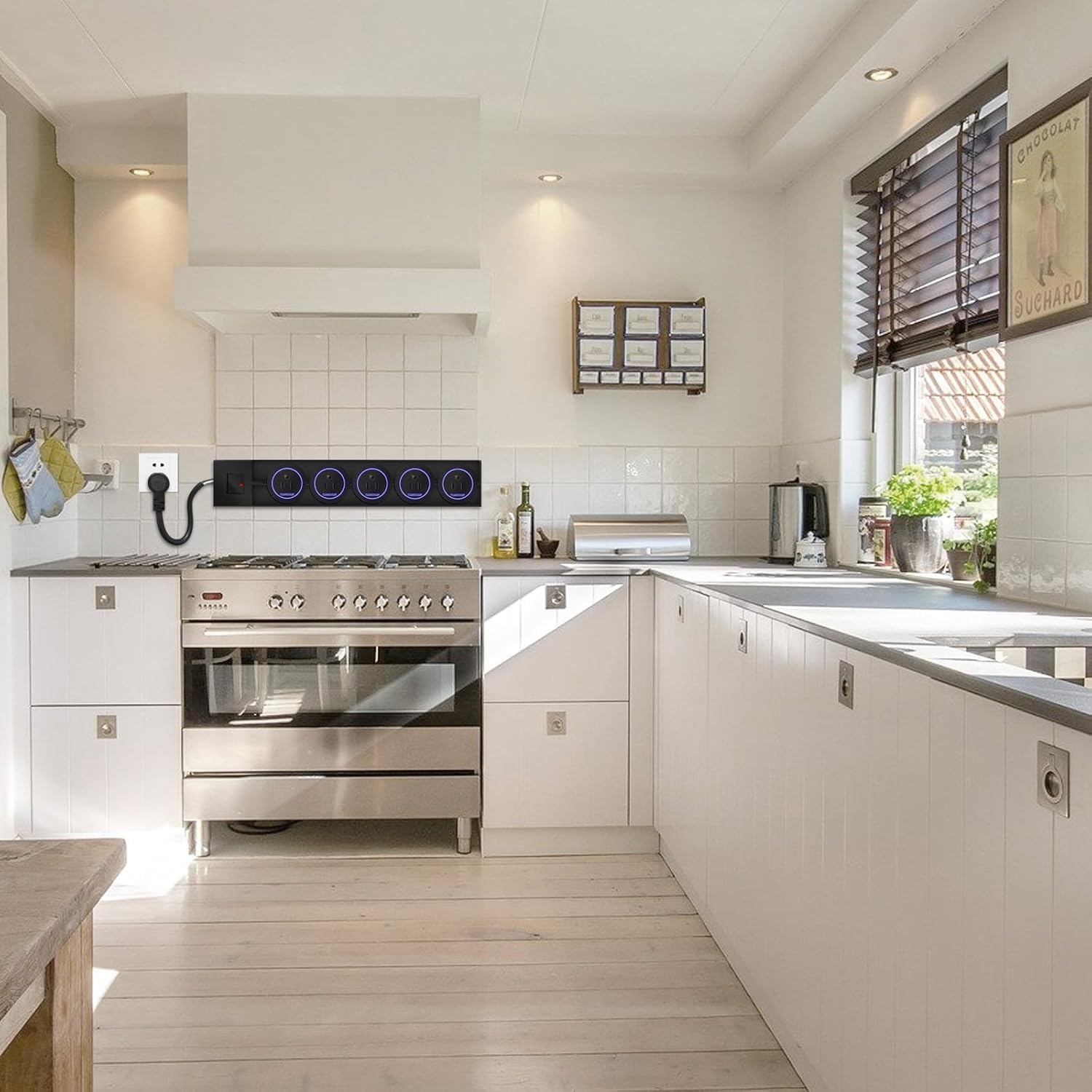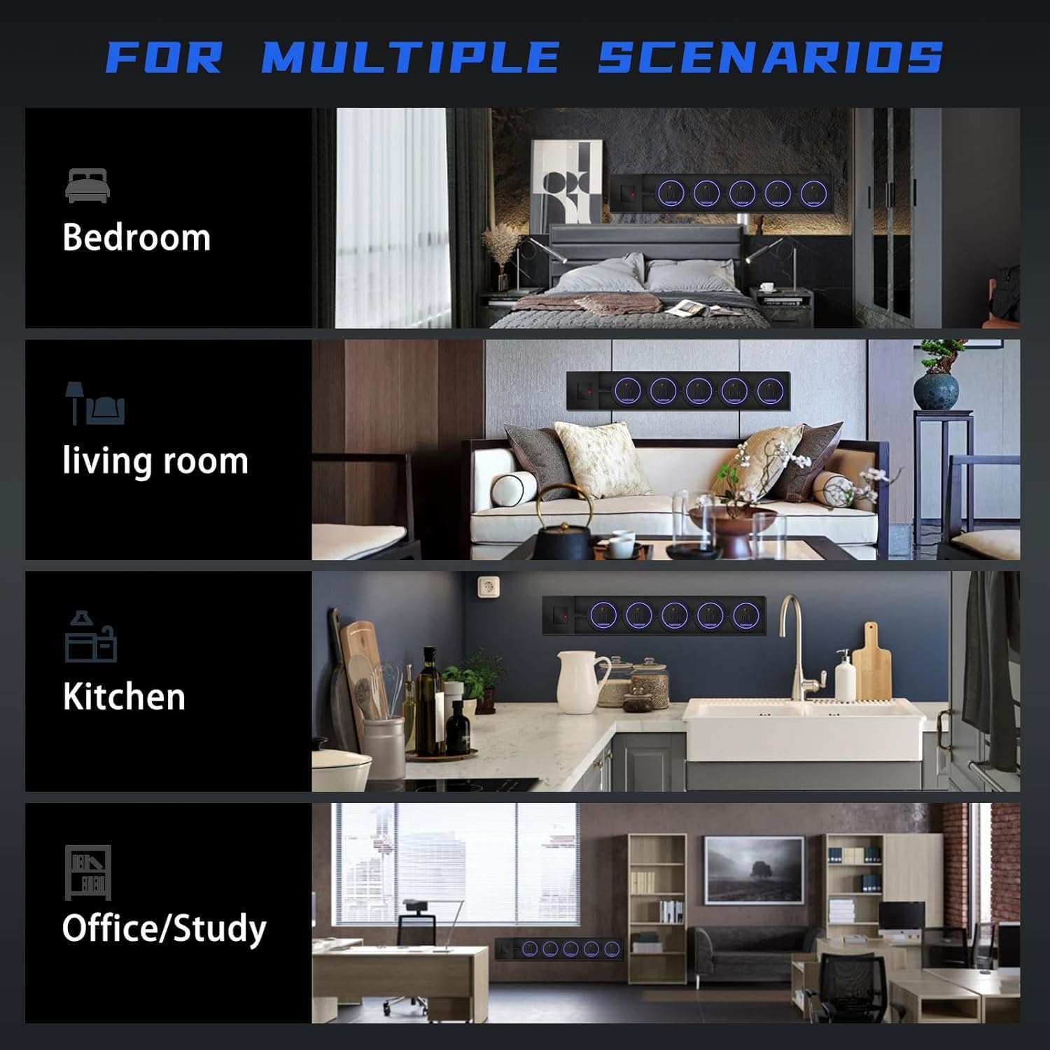 5. Smart Switch Control Integrated switch allows easy on/off operation, enhancing safety and energy - saving. Conveniently manage power supply to all connected devices, avoiding frequent plug - pulling and reducing standby power consumption. High - Power Capacity With an 8000W max track power, it handles multiple high - wattage devices simultaneously (e.g., small appliances, chargers). Perfect for home offices, studios, or commercial spaces, ensuring efficient and stable power distribution.