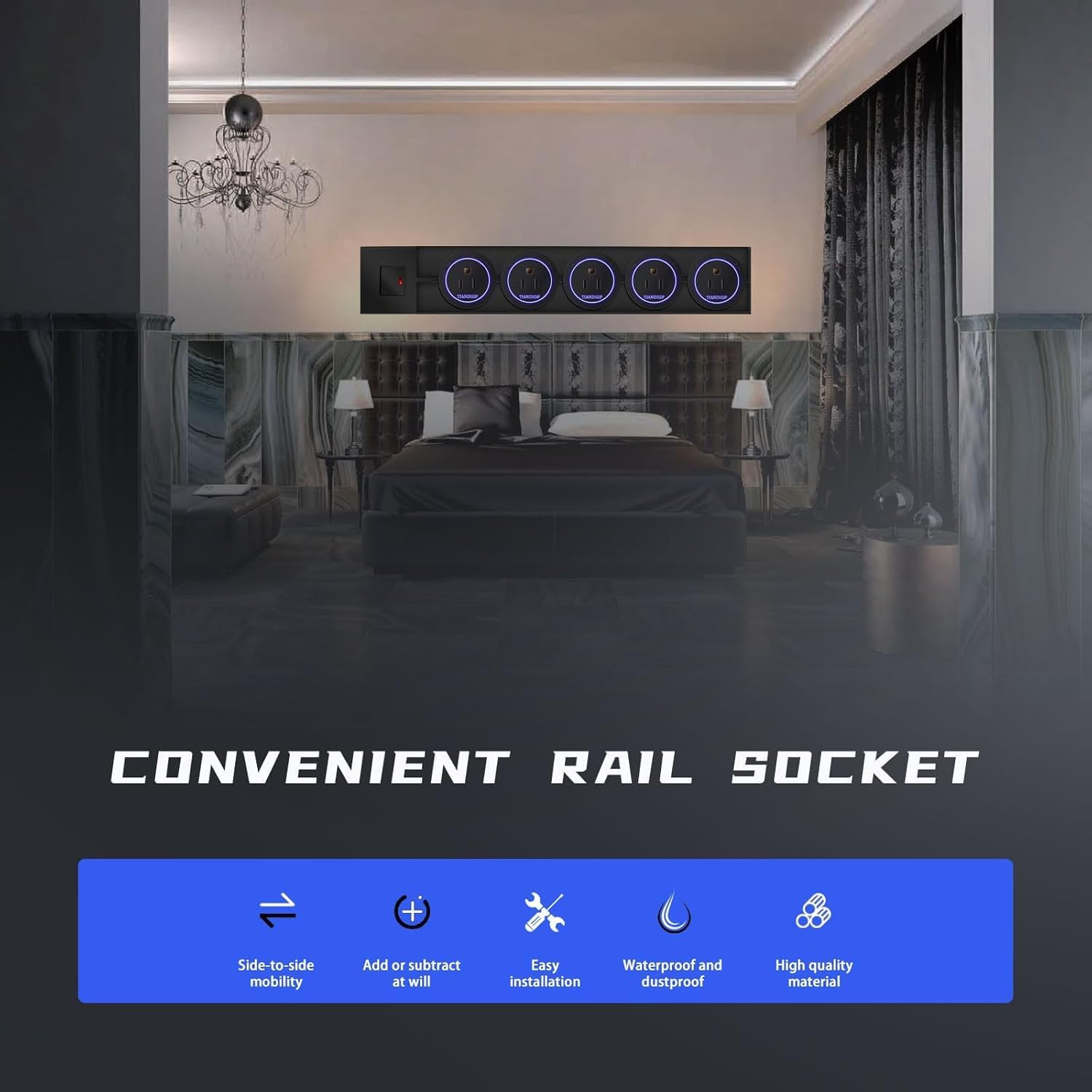 Warm warning: Please have a professional electrician install: accurately connect the live wire, neutral wire, and ground wire! Ensure your electrical safety 1. Product Overview This track socket features a 19.69 inch aluminum alloy track, combining 5 US - standard adapters, and a switch. Ideal for flexible power access in home/office setups, meeting diverse device charging/electrifying needs.