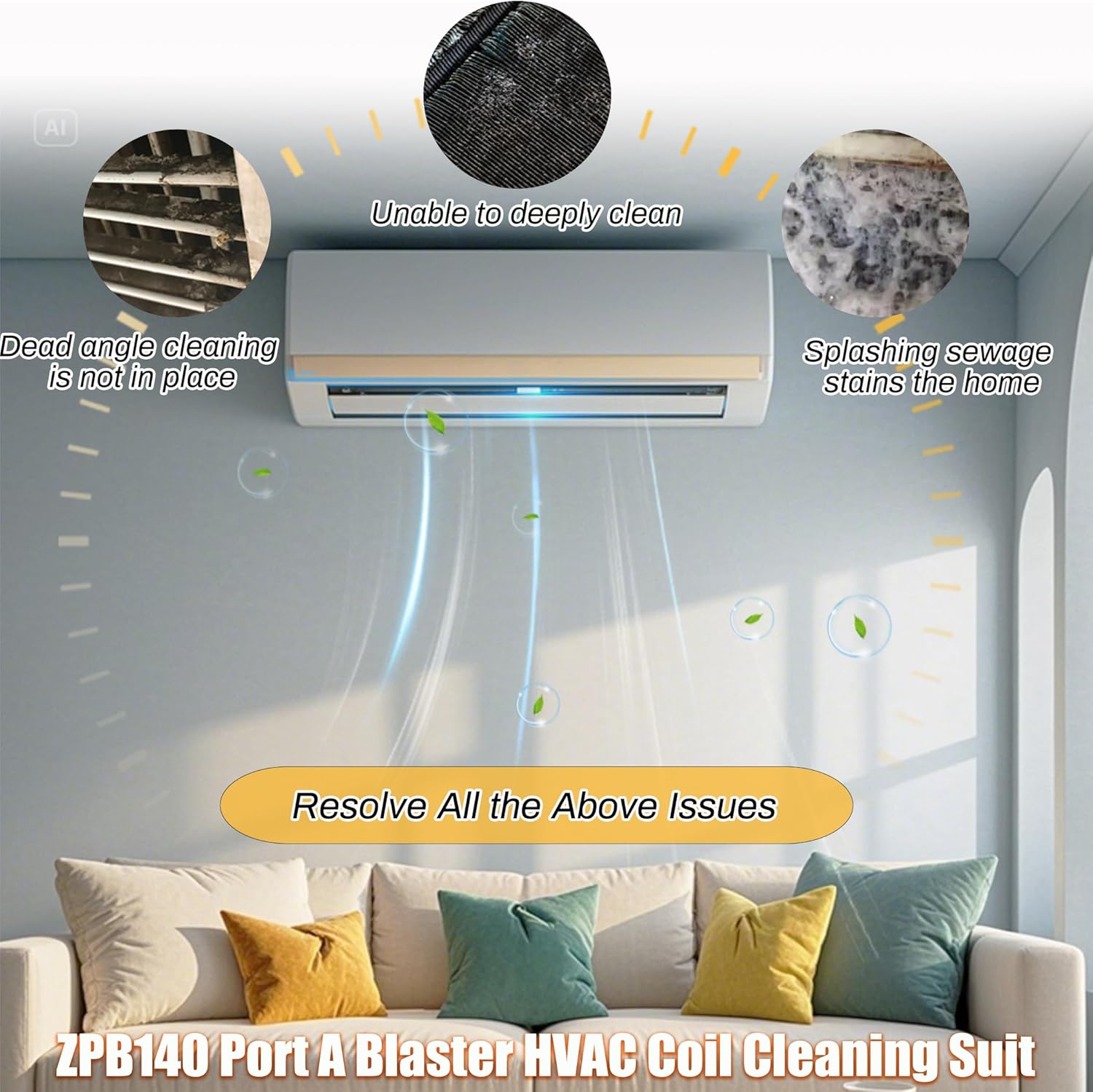Updated ZPB140 Port A Blaster HVAC Coil Cleaning: ZPB140 Port A Blaster HVAC Coil Cleaner comes with one mini washer pump, one 3.5-gallon backpack style water tank, one removable filter, one high-pressure water gun, a 5-meter outlet tube assembly, a 2.5-meter inlet tube assembly, and an instruction manual. It operates on a voltage of 100-120V at 50-60Hz, with a power rating of 80W. The flow rate is 4 liters per minute, and it functions within a working pressure range of 0.7 to 1.0 MPa.