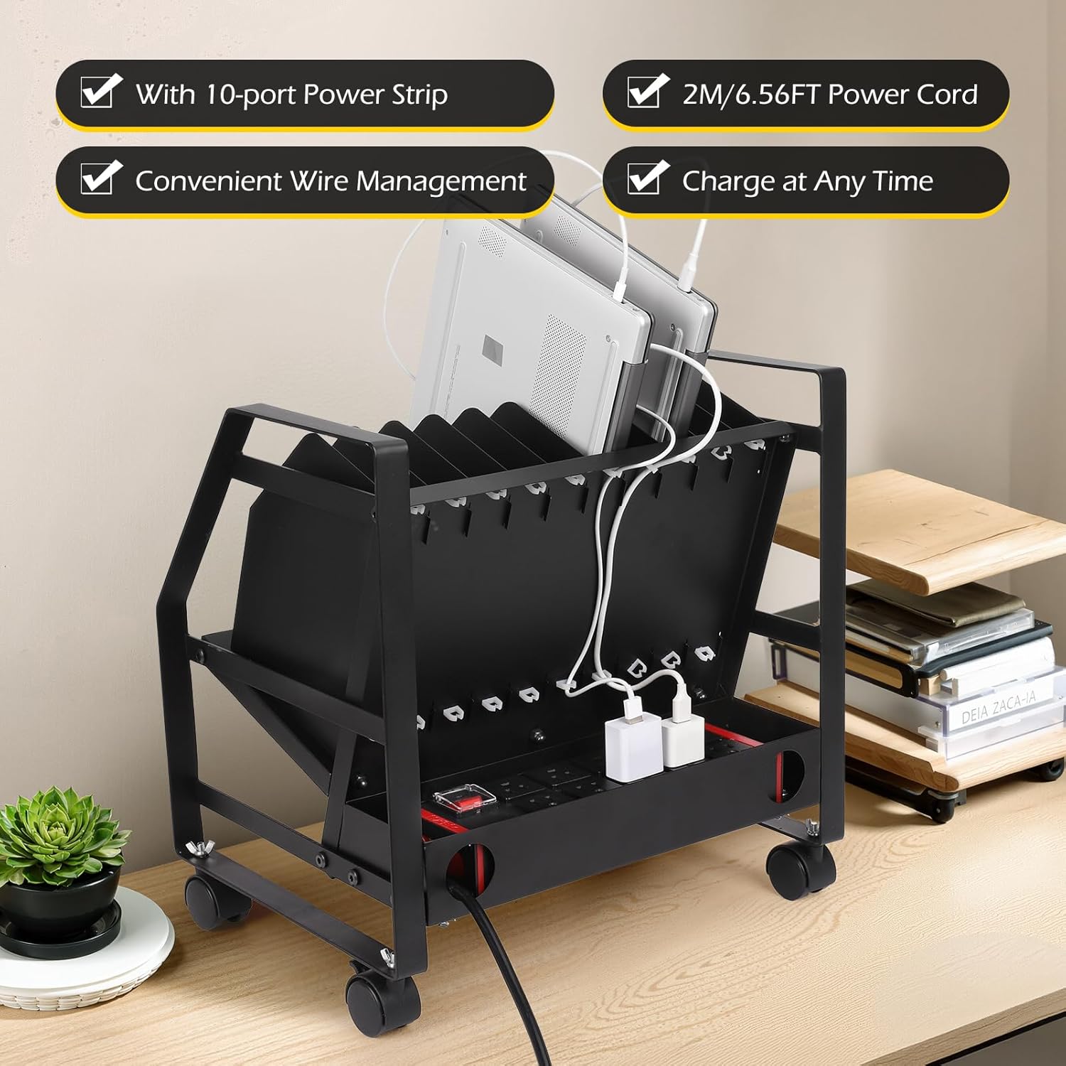 Removable Laptop Charging Cart Dyna-Living laptop charging cart with a power board, which up to 10 devices including laptops, Chromebooks, and tablets with this mobile charging station. Featuring 10 charging slots with removable dividers and 10-port power strip, and cord management clips, you can charge the iPads at any time.