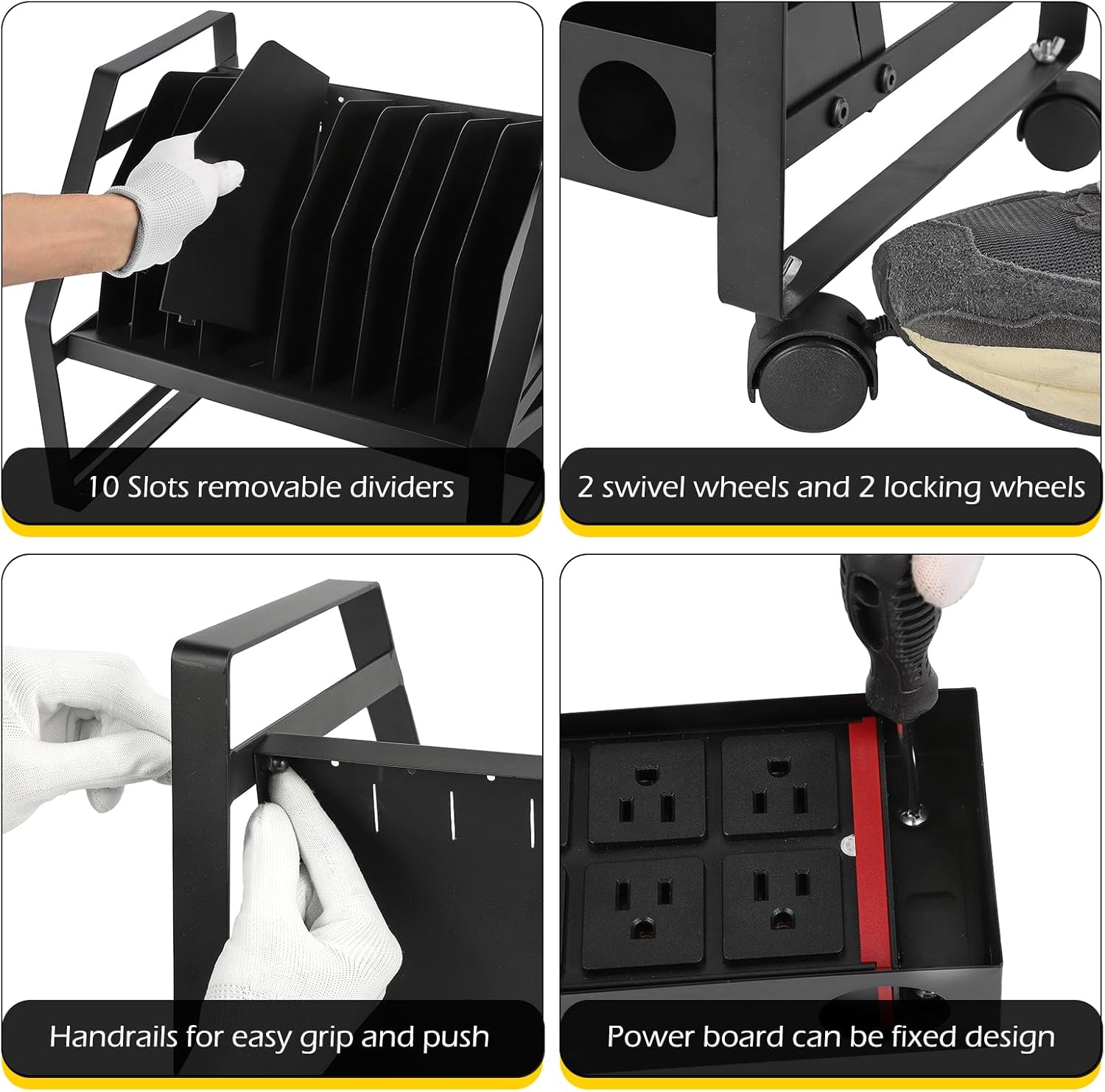 Dyna-Living Laptop Charging Cart 10 Slots Open Charging Cart w/ Wheels, Removable Laptop Charging Storage Cart