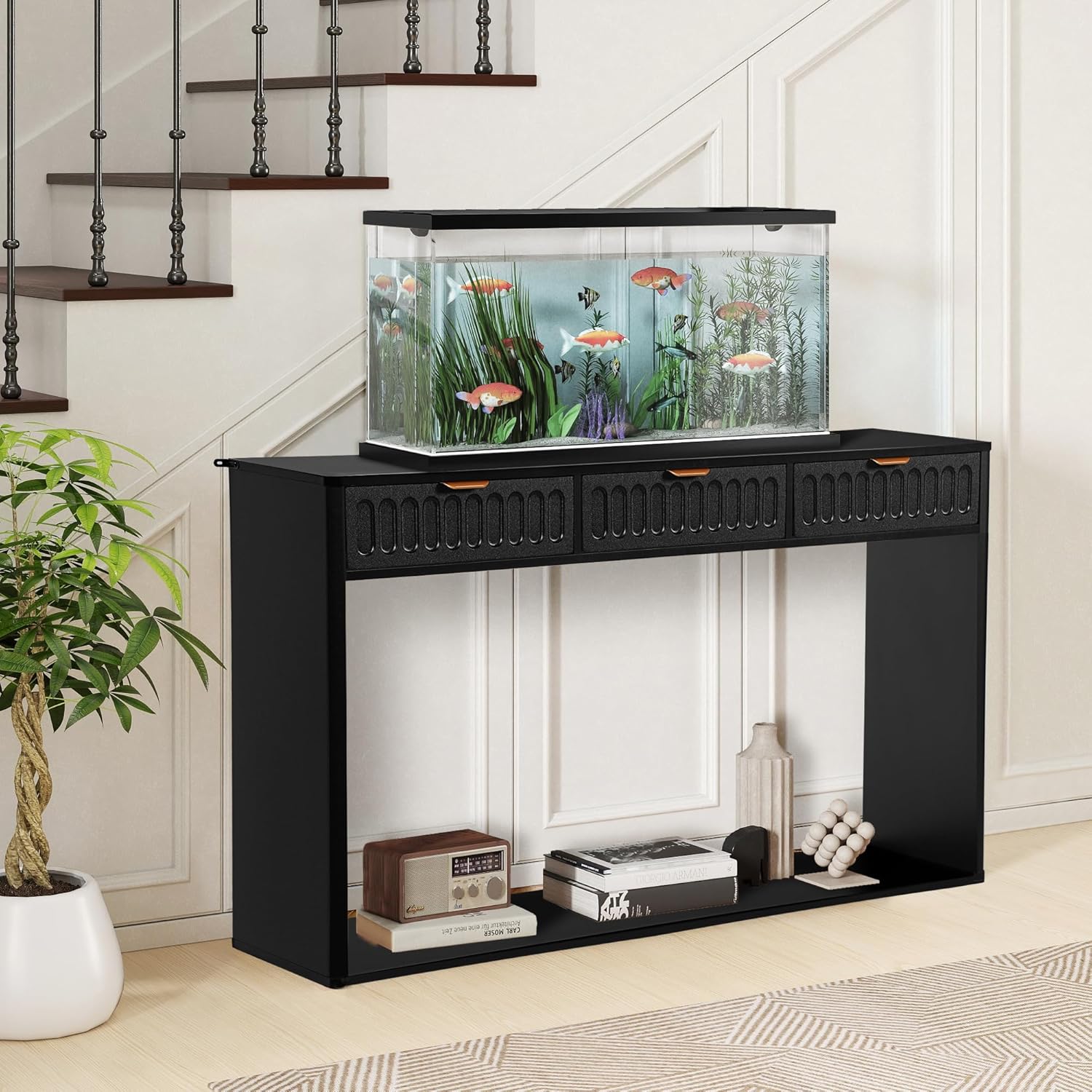 Black Console Table - It’s a slim behind couch table that benefits from saving space because of its slim design. Most people love the fluted style open design that`s easy to clean, perfect for shoes, as entrance table allows airflow in case the bottoms are at all damp.The drawers are spacious and with metal handles.