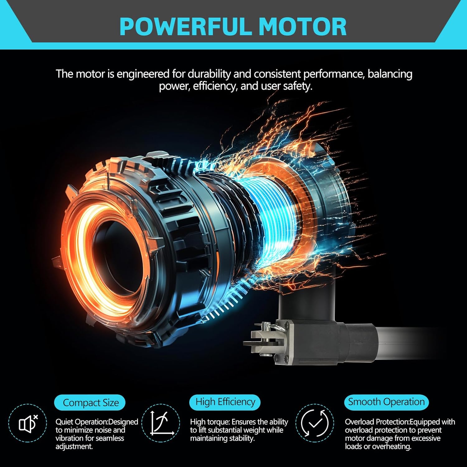 Durable motor:Designed for durability and consistent performance, the motor balances power, efficiency and user safety with quiet operation designed to minimize noise and vibration for seamless regulation,High efficiency ensures the ability to lift considerable weights while maintaining stability. Equipped with overload protection to prevent motor damage due to overload or overheating