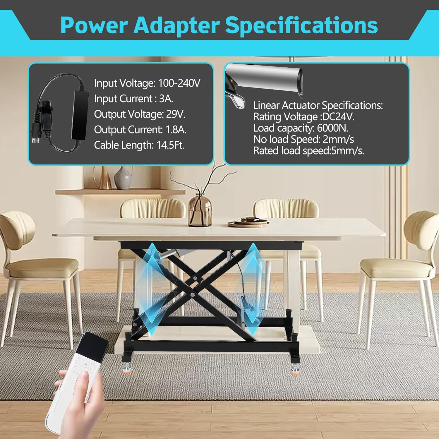 30' Electric Remote Control Dining Coffee Table Lift,110V-240V, Adjustable Height Desk Lift w/ 330LBS Weight Capacity