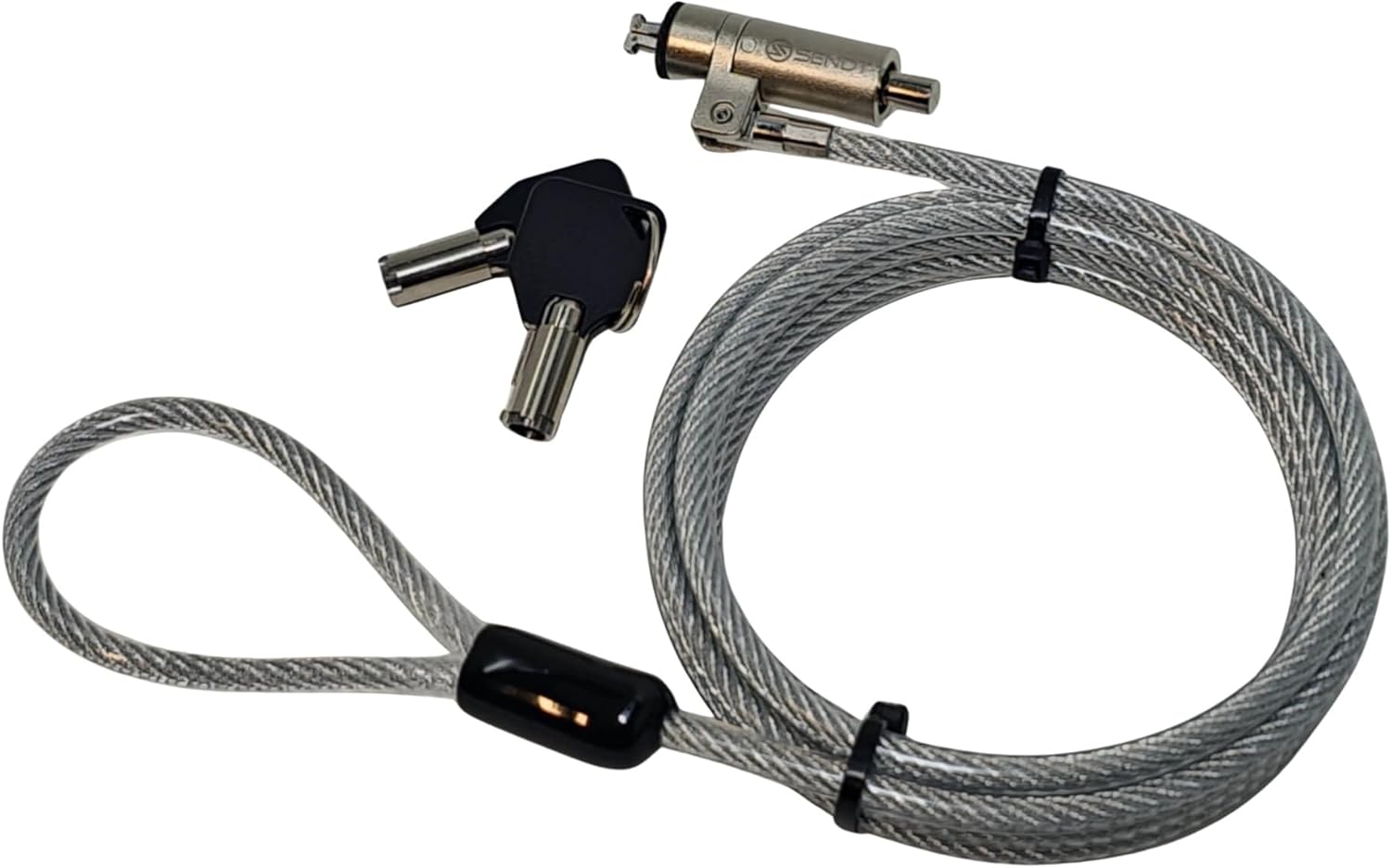 Keyed notebook lock designed to secure devices that use a Kensington nano security slot.