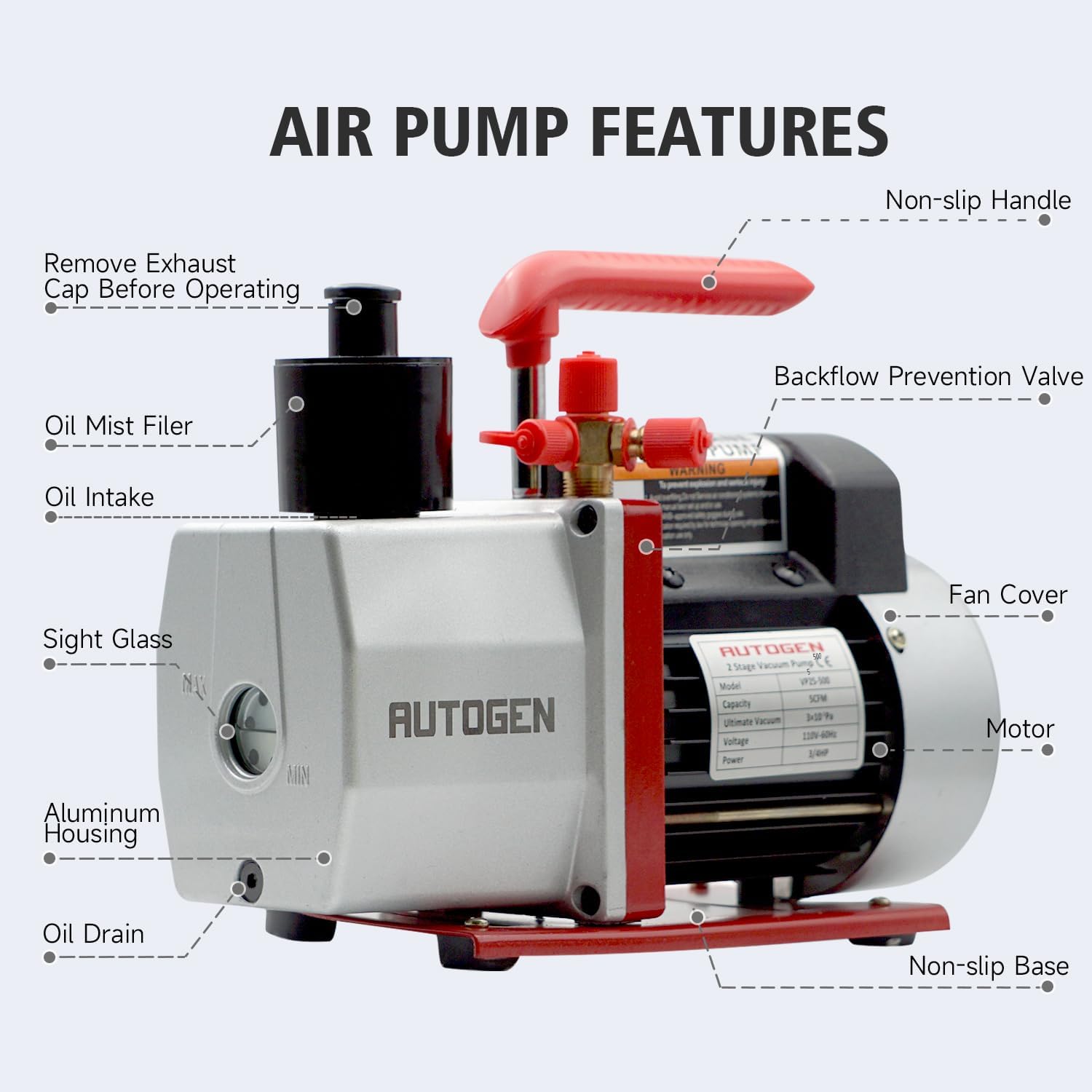 Convenient To OperateFeatures a simple oil fill port for a clean pour, oil window provides vital information like oil level and oil quality. The design of a great starting moment is easy for starting and high efficiency, which can keep it working perfectly even is lower ambient temperature and lower volt. 1/4\', 1/2\' and 3/8\' ports allow fast and easy servicing of automotive and other low-tonnage R12, R22, R134a, and R410a systems.