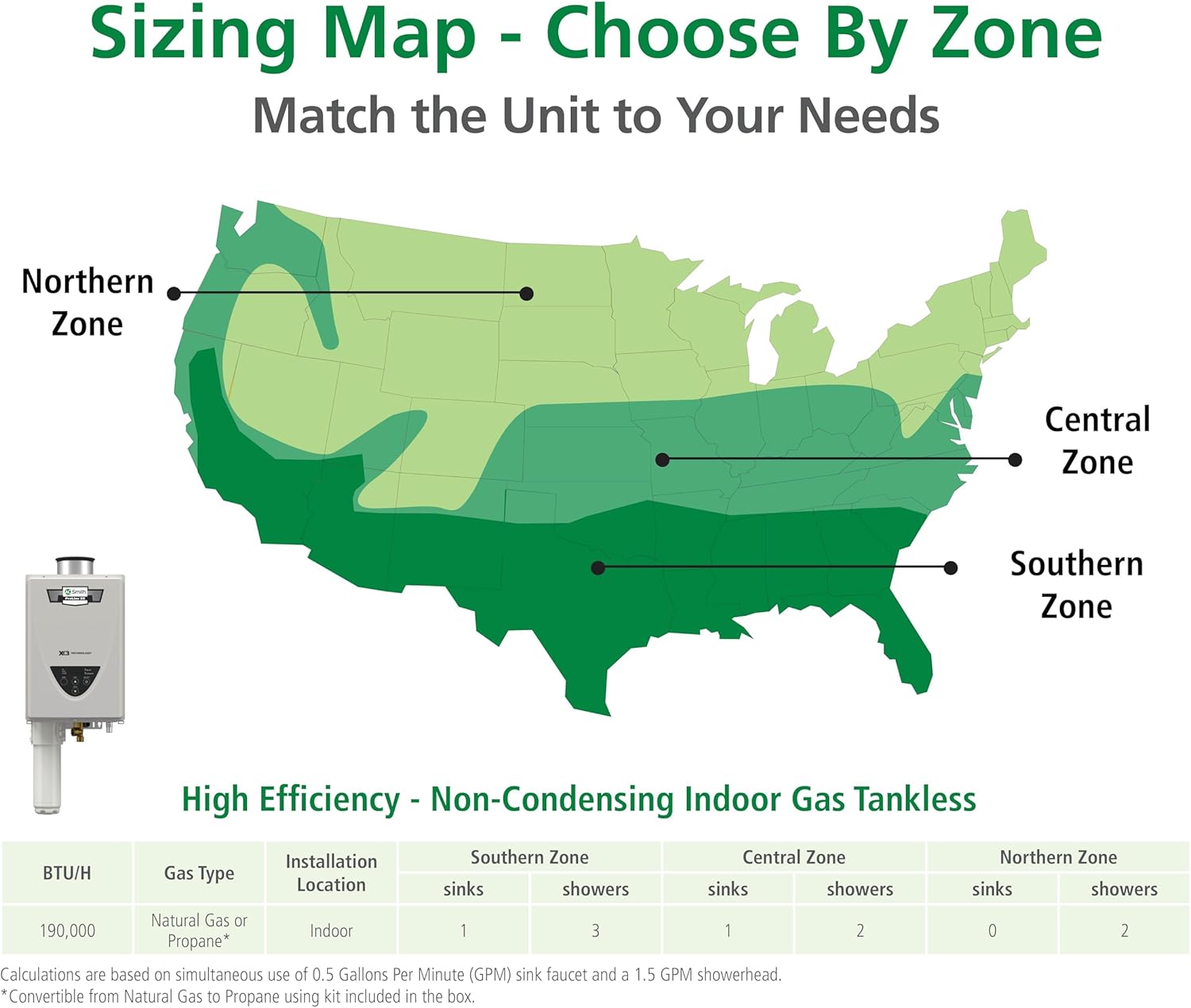 Tankless Water Heater Gas, On Demand Hot Water, 8 GPM, Non-Condensing Natural Gas w/ X3 Scale Prevention Tech