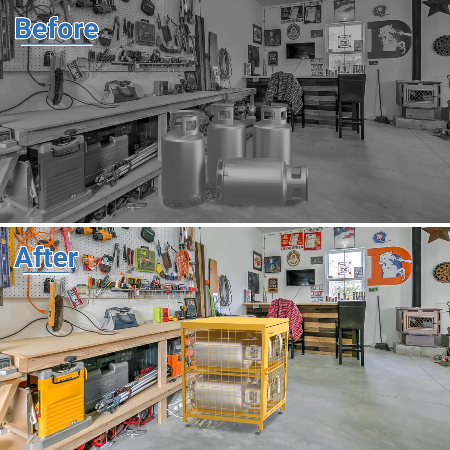 Enhanced Safety & Security: Ventilated design reduces gas buildup from leaks, making it safe for garages, workshops, or outdoor spaces. Includes a strong lock and 2 keys to prevent unauthorized access.