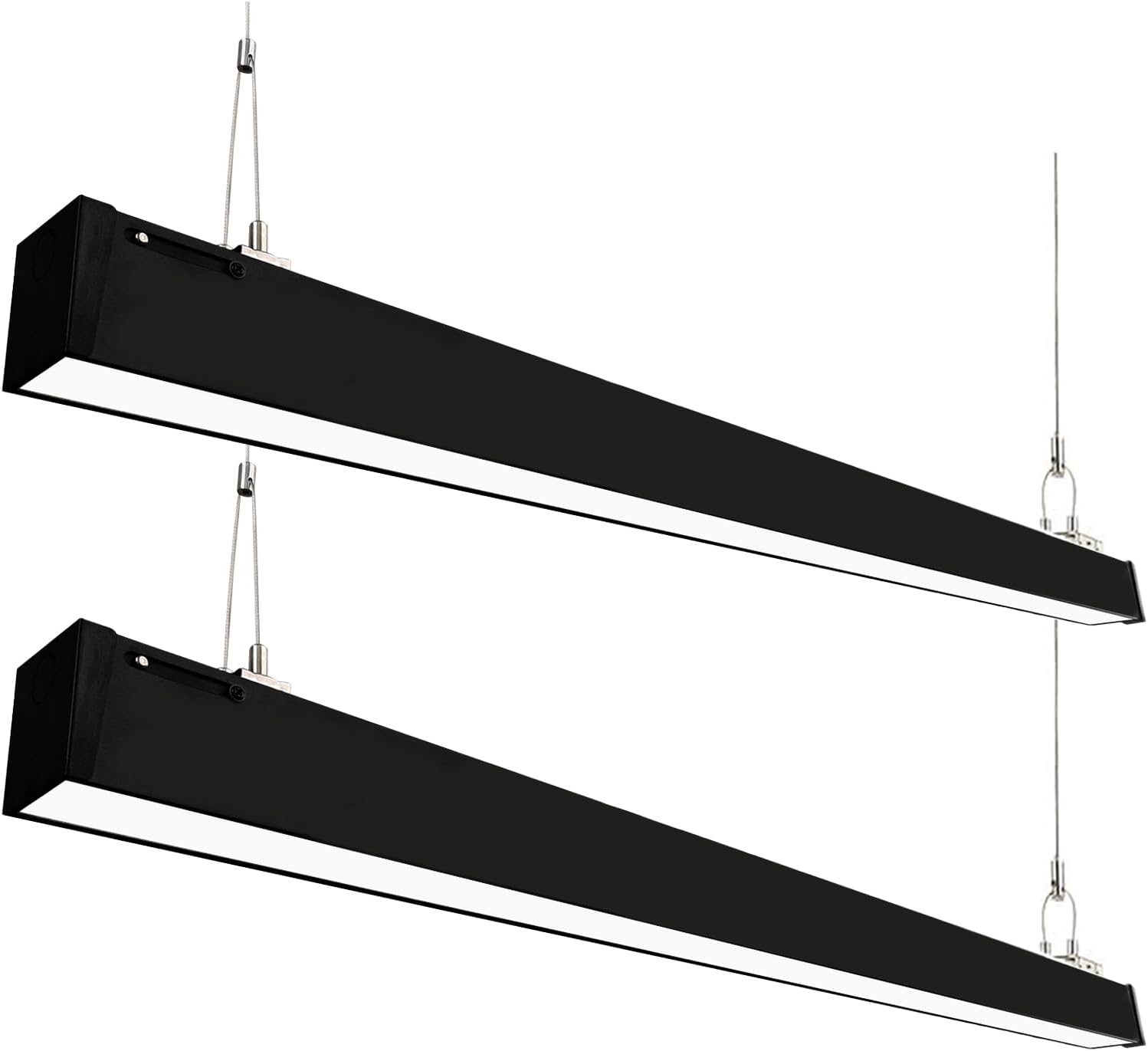 4FT LED Linear Light Fixtures, Linkable, 40/30/20W, 3/4/5000K, Flush Mount Suspended, Dimmable, Black, 2Pack