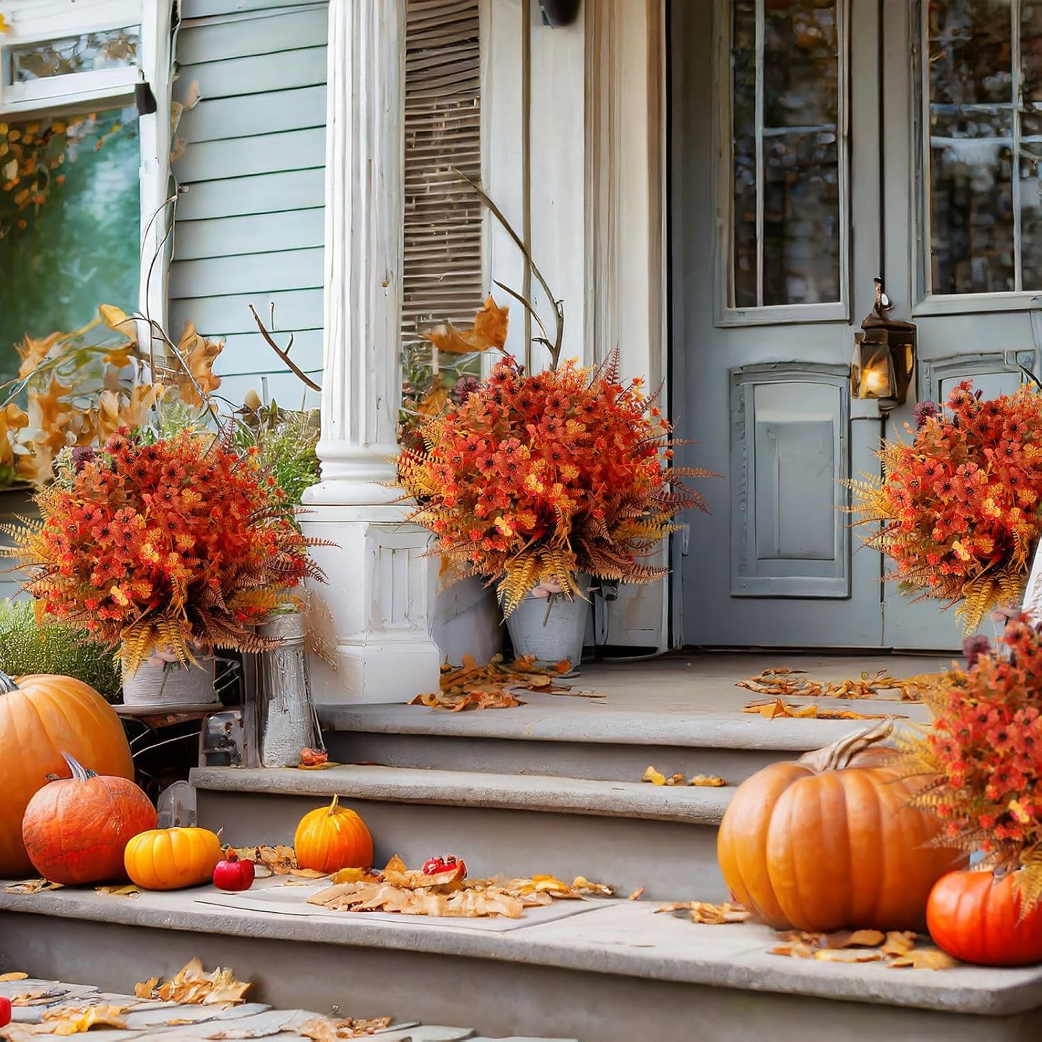Vivid Colors: These faux fall flowers feature rich autumn tones of yellow, orange and red, making them especially suitable for autumn, Thanksgiving and other holiday decorations, infusing your decor with unprecedented vitality. Artificial outdoor fall flowers can also serve as an excellent embellishment for DIY projects, meeting your personalized needs through free combination