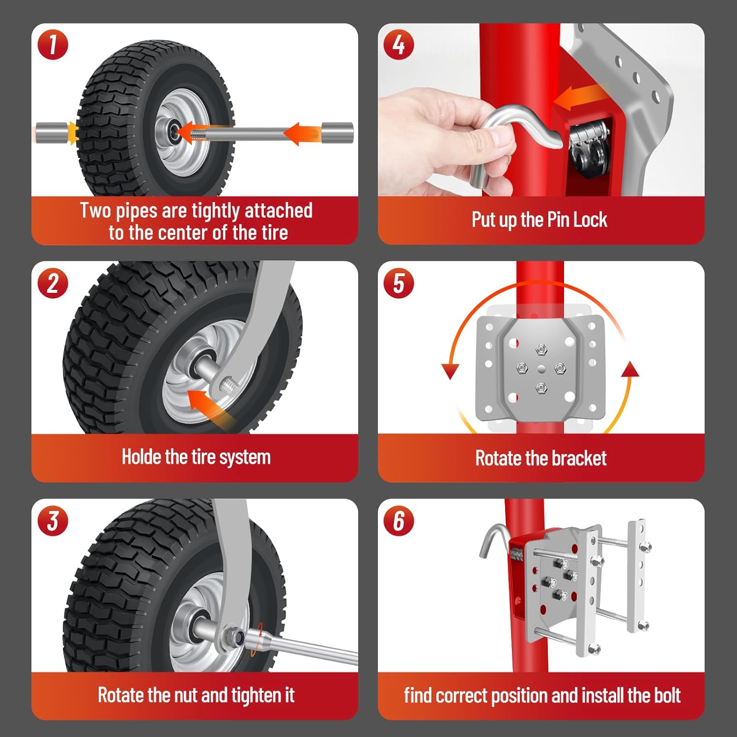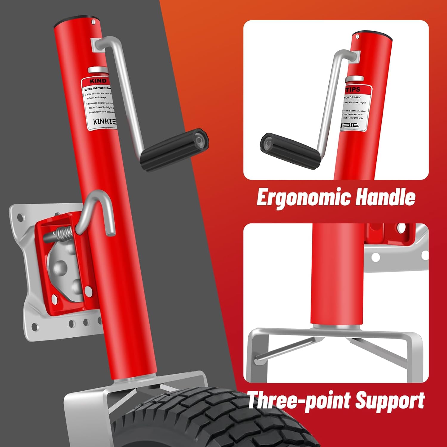 3.Material:The Beach Boat trailer jack is made out of Heavy-duty Precision Steel,Red powder coating and galvanizing to prevent corrosion and rust, can be used in adverse weather and withstand harsh conditions. Ideal for outdoor
