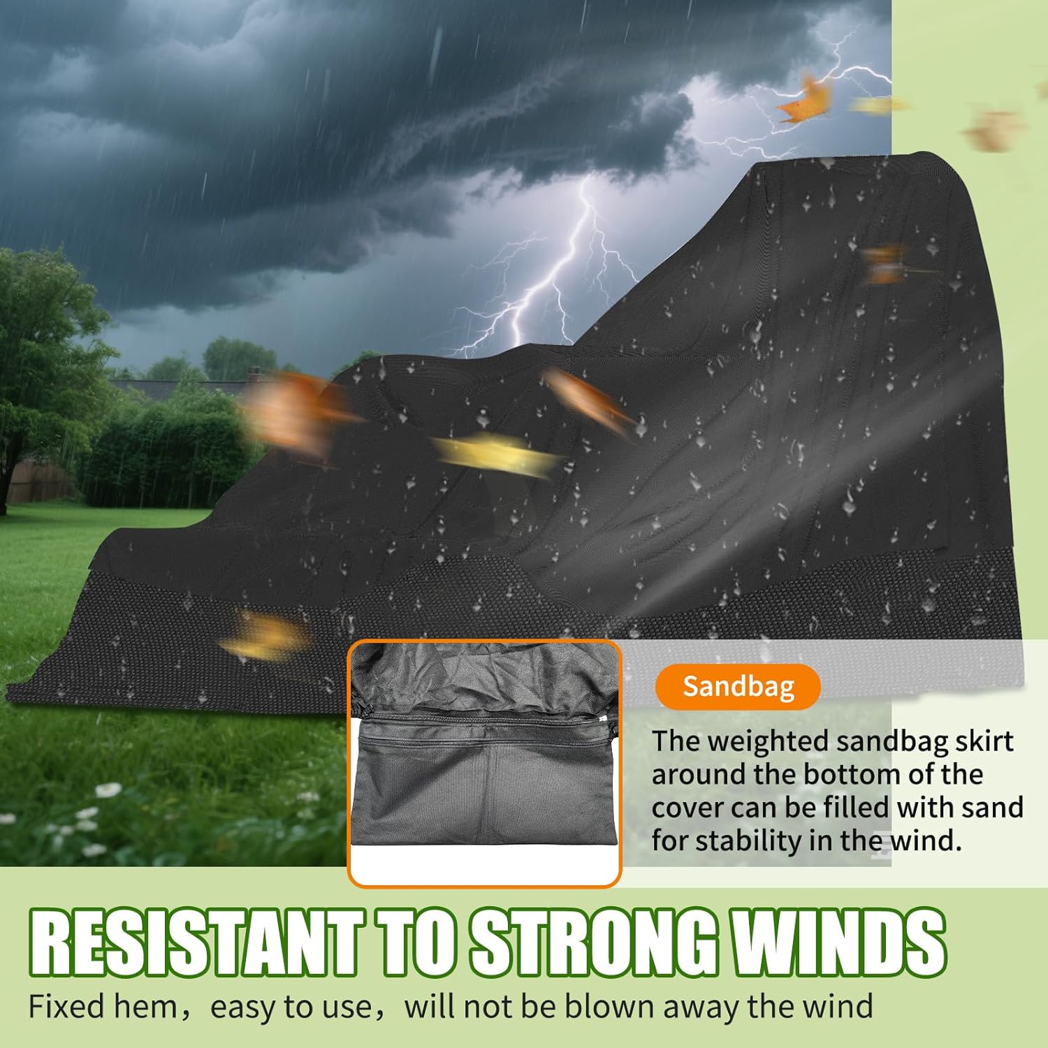 Wind-Resistant Secure Fit: Features built-in sand bags and adjustable buckle straps to ensure a tight, secure fit even in high winds and harsh weather conditions. The weighted 35 lb design provides extra stability to keep the cover in place.