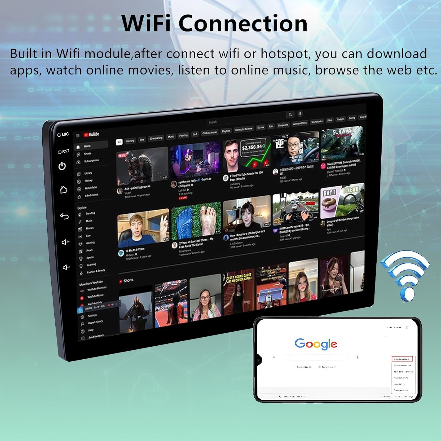 Supports Wireless CarPlay and Android Auto: This car multimedia player offers both wired and wireless support for Apple CarPlay and Android Auto. simply connect your phone to your car audio via Bluetooth, easily access your phone to make calls, gps navigating, play music or manage other apps via siri,google assistant or touch the display.