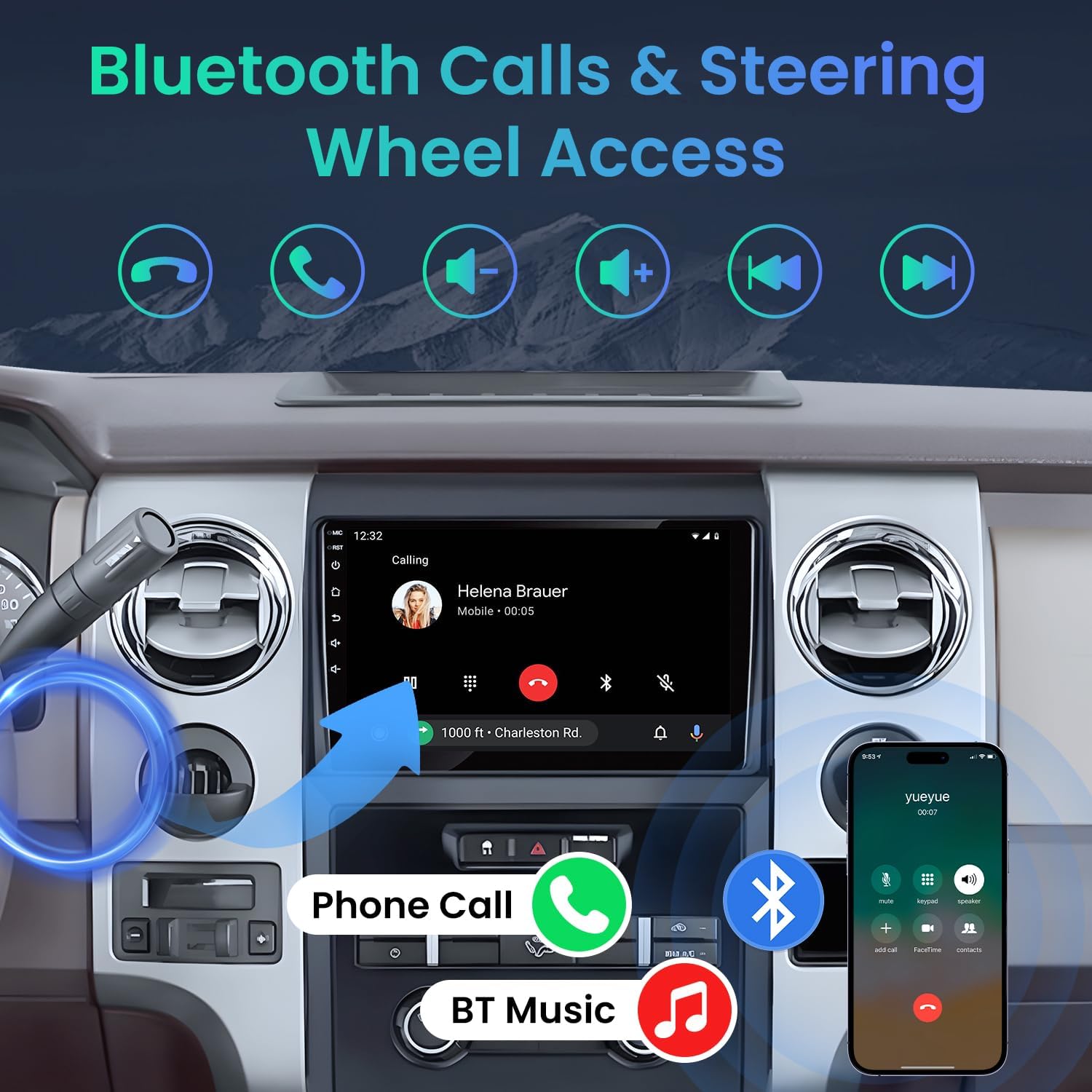 Android 12 System & 4 Core CPU Superior Configuration: Powered by Android 12, this 9-inch touchscreen car stereo offers an ultra-high resolution of 1280*800 for vibrant and crystal-clear visuals. The new 4 core of 2010 f150 radio upgrade processing chip eliminates the need for fan cooling and reduces noise. Low power consumption, high performance. 2GB running memory, 32GB storage space.