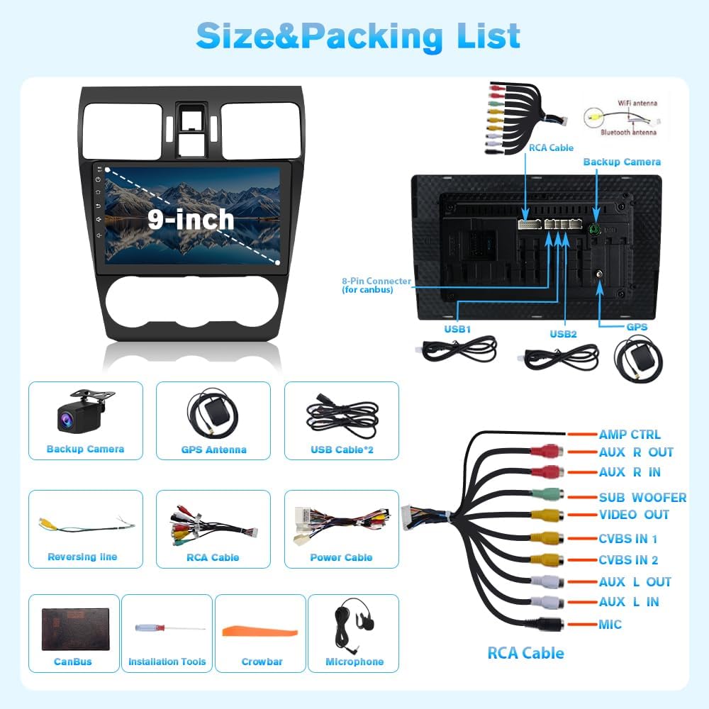 Car Radio Stereo for Subaru Forester WRX Impreza 2013-2015, w/ CarPlay Android Bluetooth GPS, Backup Camera