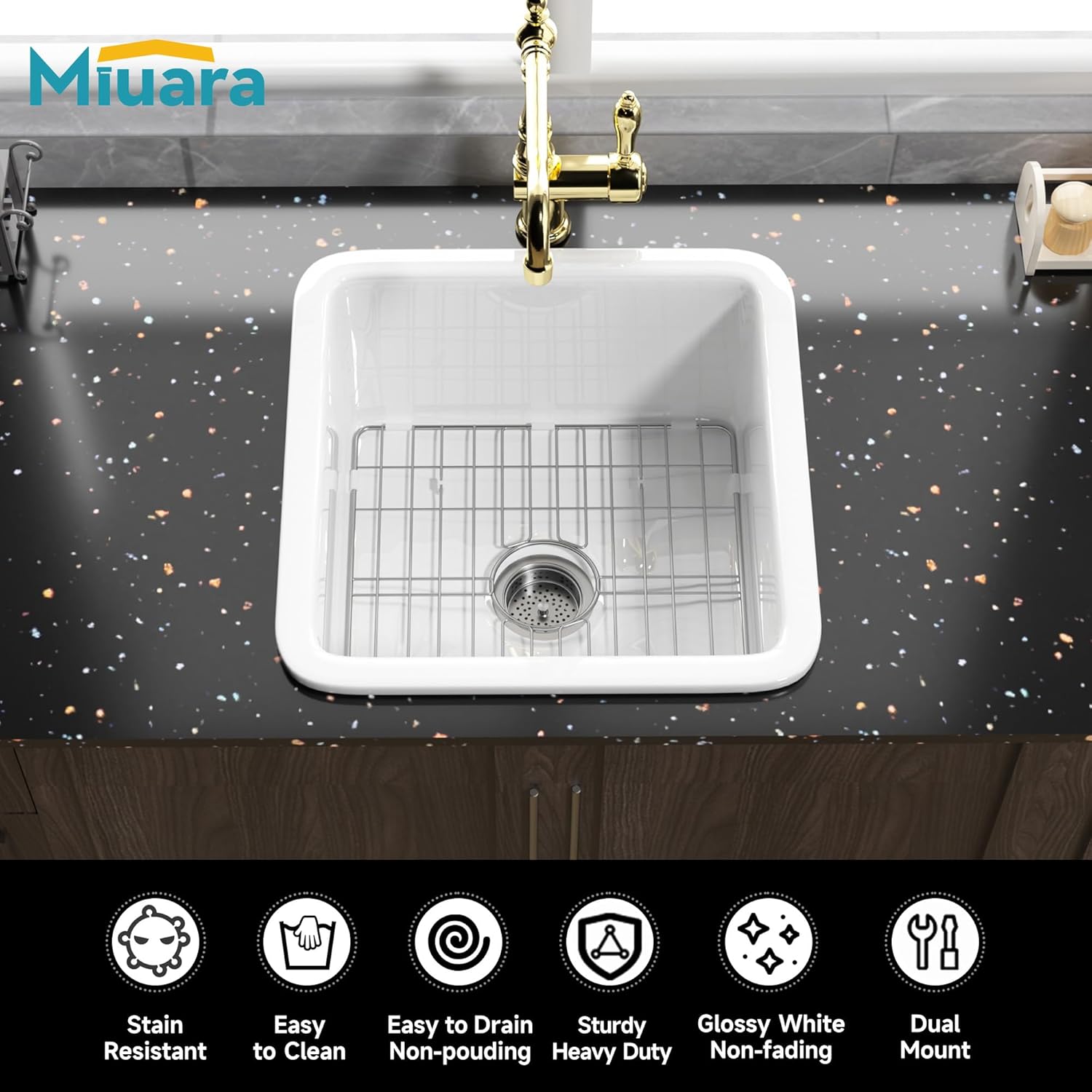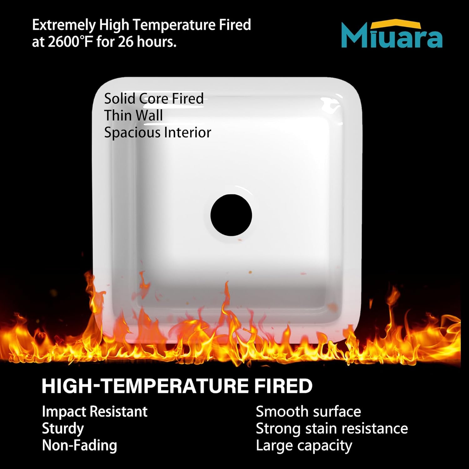Stain-resistan,Smoothy Glazed SurfaceUltra-fine Italy glaze in high technology, Miuara small kitchen sink white is super glossy and smooth. And the thick porcelain glaze is generously durable and sturdy, which can resist high temperature, scratches, and stains. The fireclay bar sink will NOT color fades or yellowish for many years. Miuara whtie bar sink drop in can keep as glossy white over years of kitchen use!