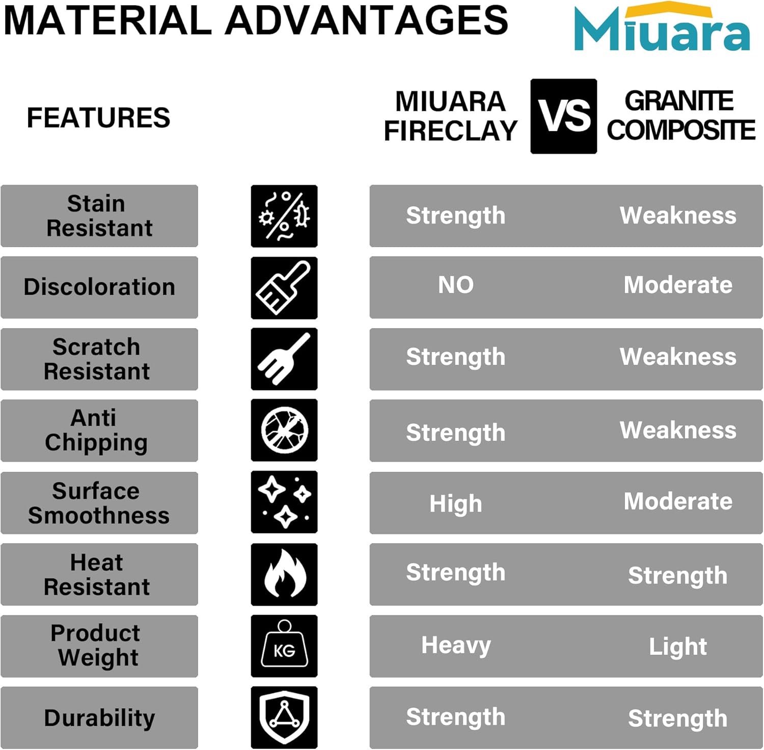 Safe PackagingThe packaging has undergone repeated rigorous drop,shock and heavy pressure testing to ensure that Miuara fireclay bar sink is delivered intactly without damaged.