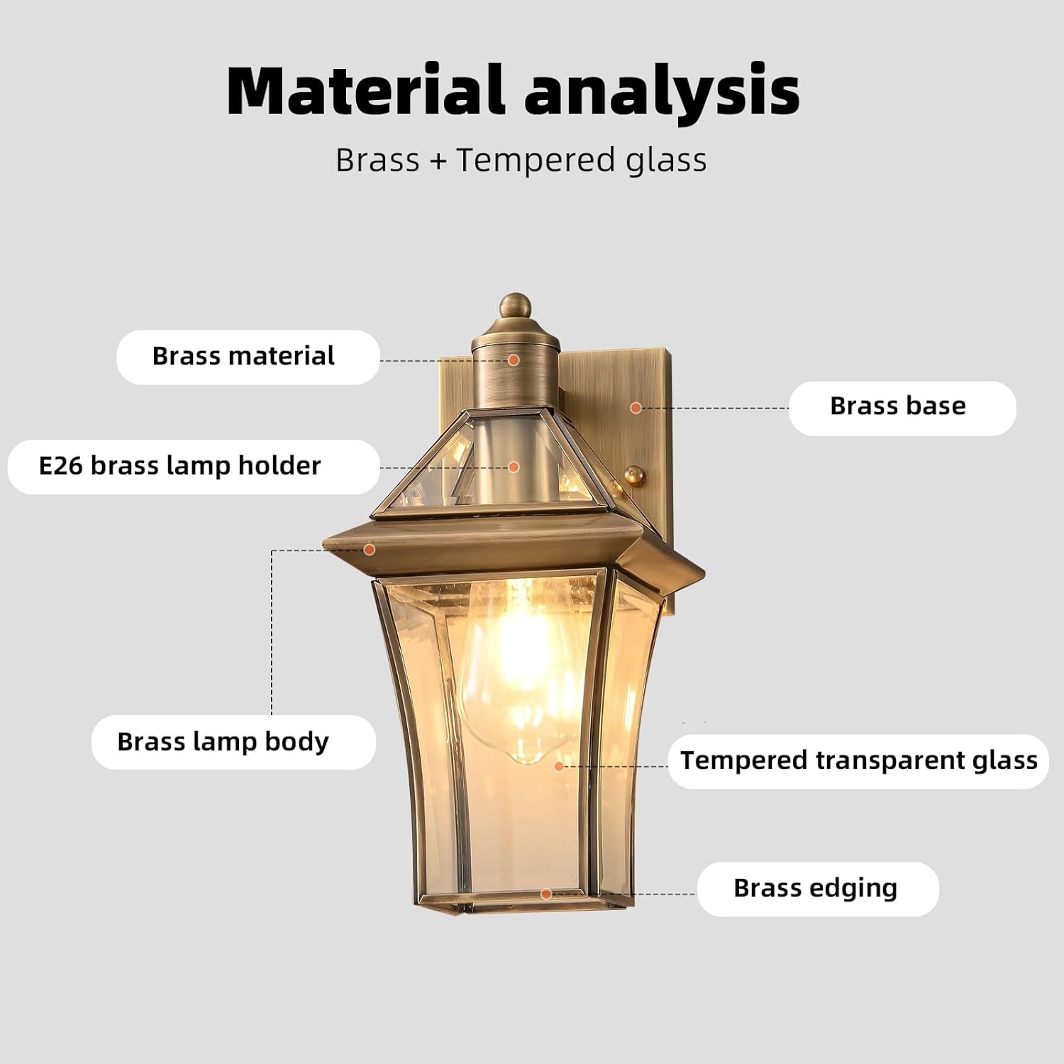 Premium Brass Material & All-Weather Durability – Long-Lasting Rustproof Performance Crafted from high-quality solid brass, this outdoor wall light boasts excellent rust-resistant and corrosion-resistant properties. Even after years of exposure to rain, snow, or intense sunlight, it won’t peel or fade. The hand-soldered craftsmanship enhances its weatherproof construction, ensuring reliable performance even in harsh outdoor conditions.