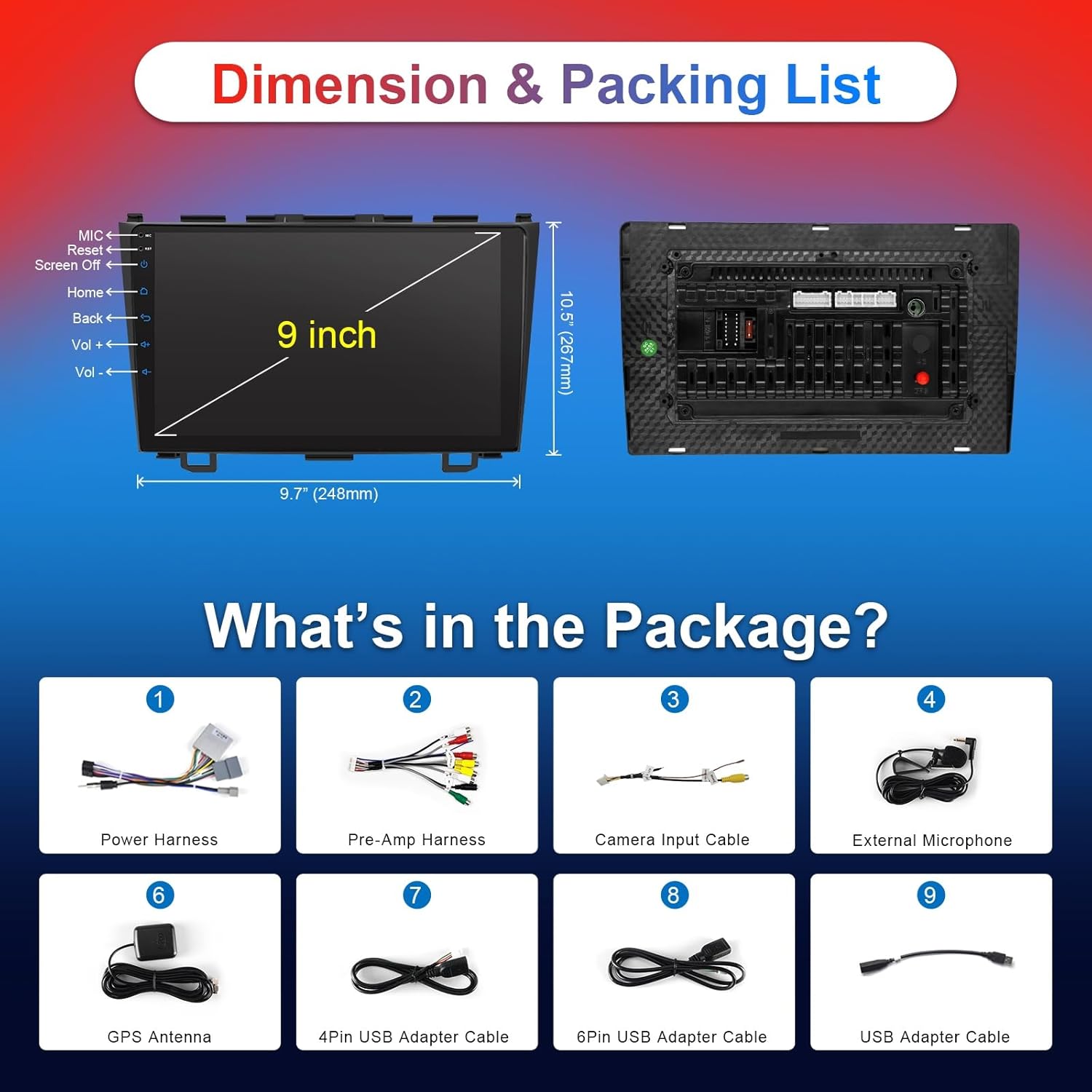 9-Inch Touchscreen for Honda CRV 2007-2011 Upgrade your driving experience with a sleek 9-inch touchscreen for Honda CRV 2007-2011. This high-definition screen ensures smooth and responsive operation, making navigation, media control, and entertainment easier than ever. The large display offers clear visibility, whether you`re checking directions or enjoying your favorite videos.