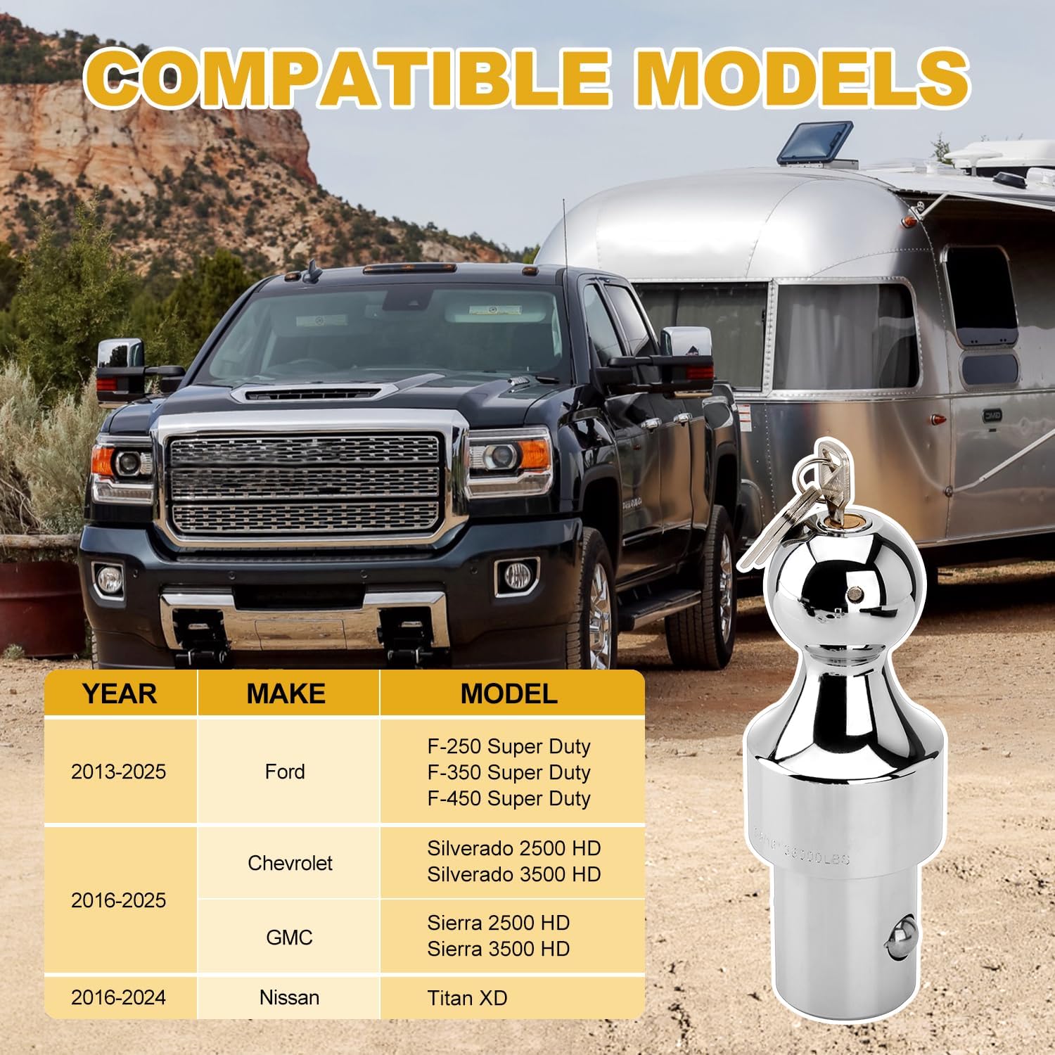 Upgrade Anti-Theft Lock Design: with a safety lock, it not only prevents safety hazards such as the ball falling off the frame due to vibration during towing, but also prevents the gooseneck hitch ball puck system from being stolen when it is unattended, ensuring a secure and reliable connection during trailer towing.