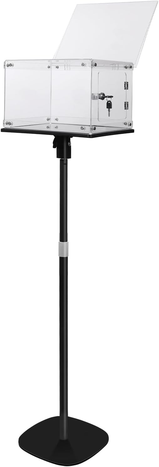 Heavy-Duty Stable Base: 11\' x 11\' metal base ensures the voting box or charity box remains sturdy in high-traffic areas like election centers, lobbies, or fundraisers