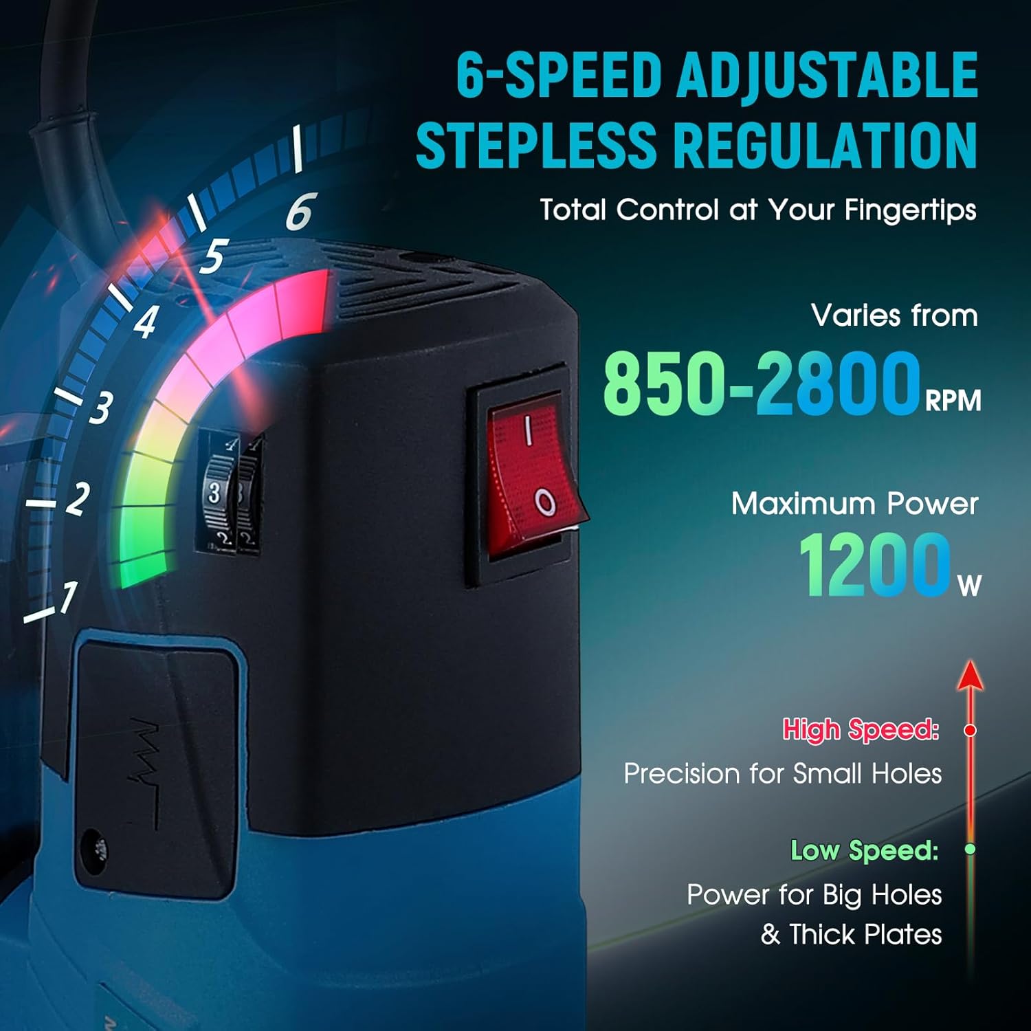 Conquer Metal, Wood & Tough DIY Projects: Power through steel, wood & plastic with a robust 1200W motor (2800 RPM max). Engineered for garage workshops – drill automotive parts, build furniture, or tackle heavy-duty DIY repairs with confidence