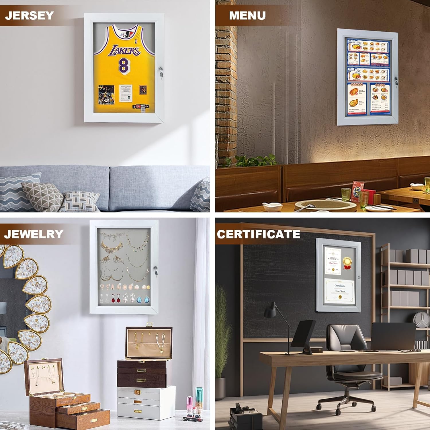 Lockable Secure Cabinet:Tamperproof locking design with clear acrylic door and keys. Ensures maximum protection for information, announcements, and ideas in high-traffic areas. Keeps documents secure and free from damage.