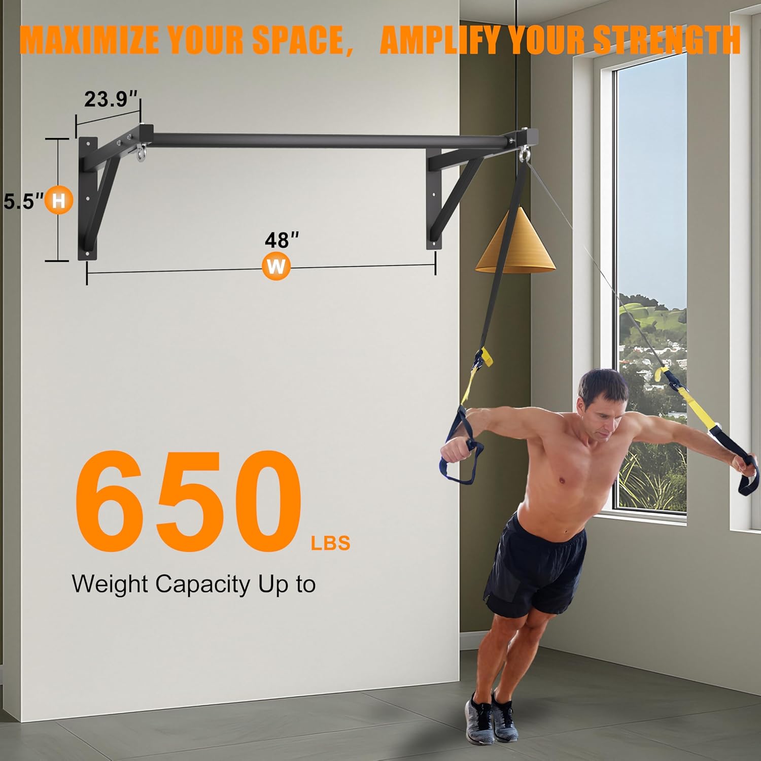 Pull Up Bar Wall Mounted, Heavy Duty 650 lbs Capacity Chin Up Bar, 48' Multi-Grip