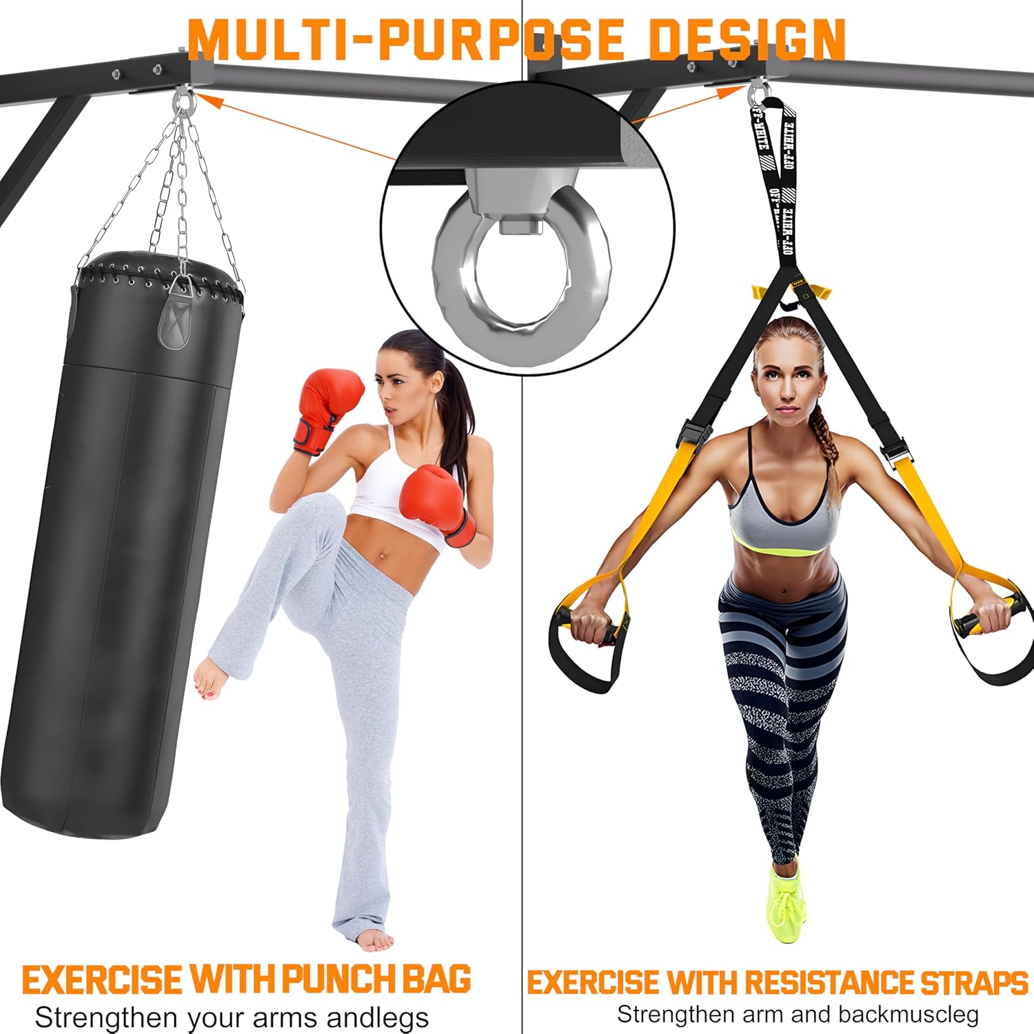 MULTIFUNCTION ANCHOR BOLTSOurs home pull up bar there are two anchor boltsto attach additional trainng accessories:TRX straps, resistance bands, punching bags,yoga straps,power ropes,Bringing us diversity.