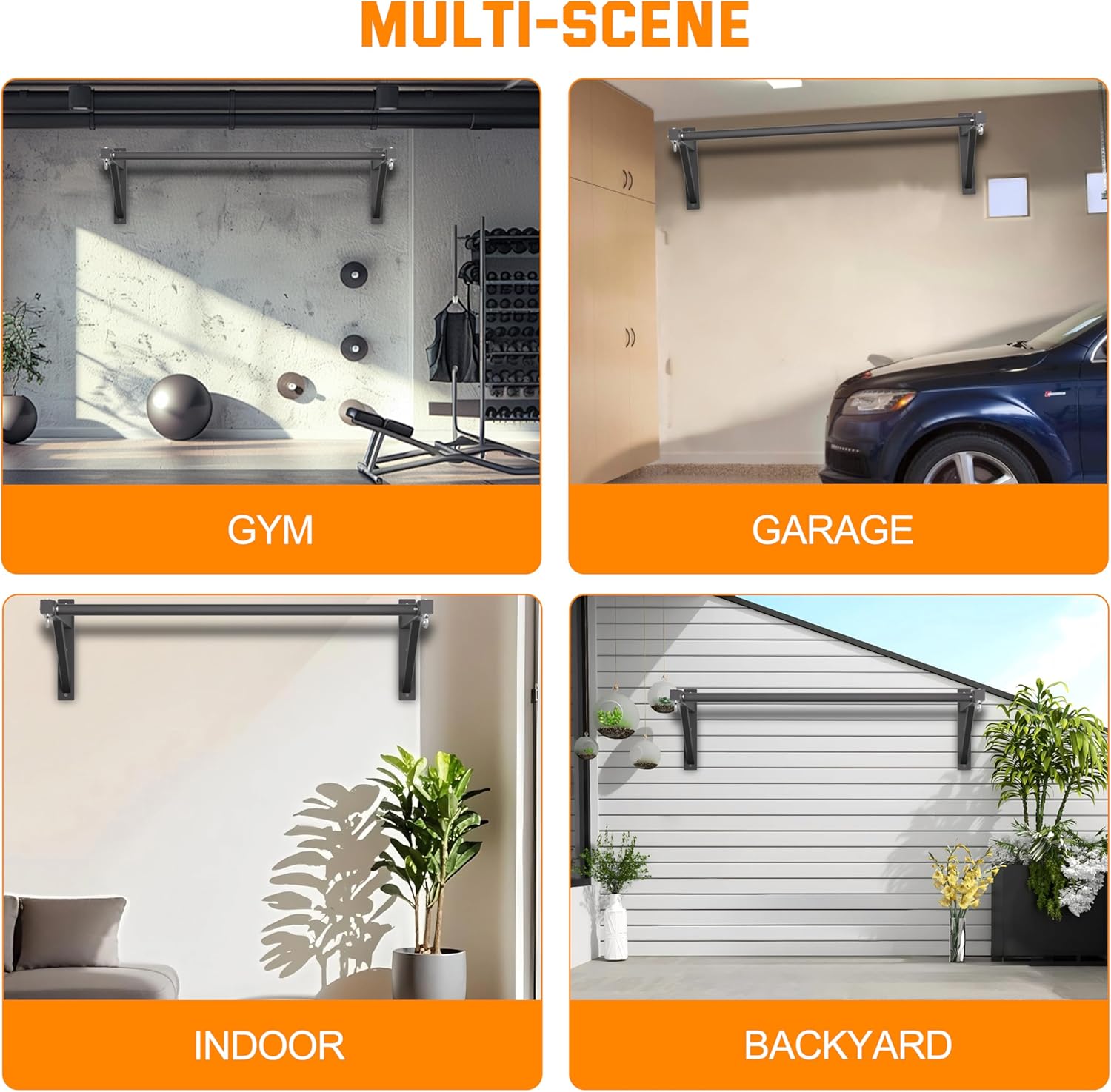 MULT-SCENARIO USEOur hanging bar for exercise is suitable for multi-scenario use, such as the gym, home, backyard and garage scenarios training, so that different spaces can become an efficient workout place.