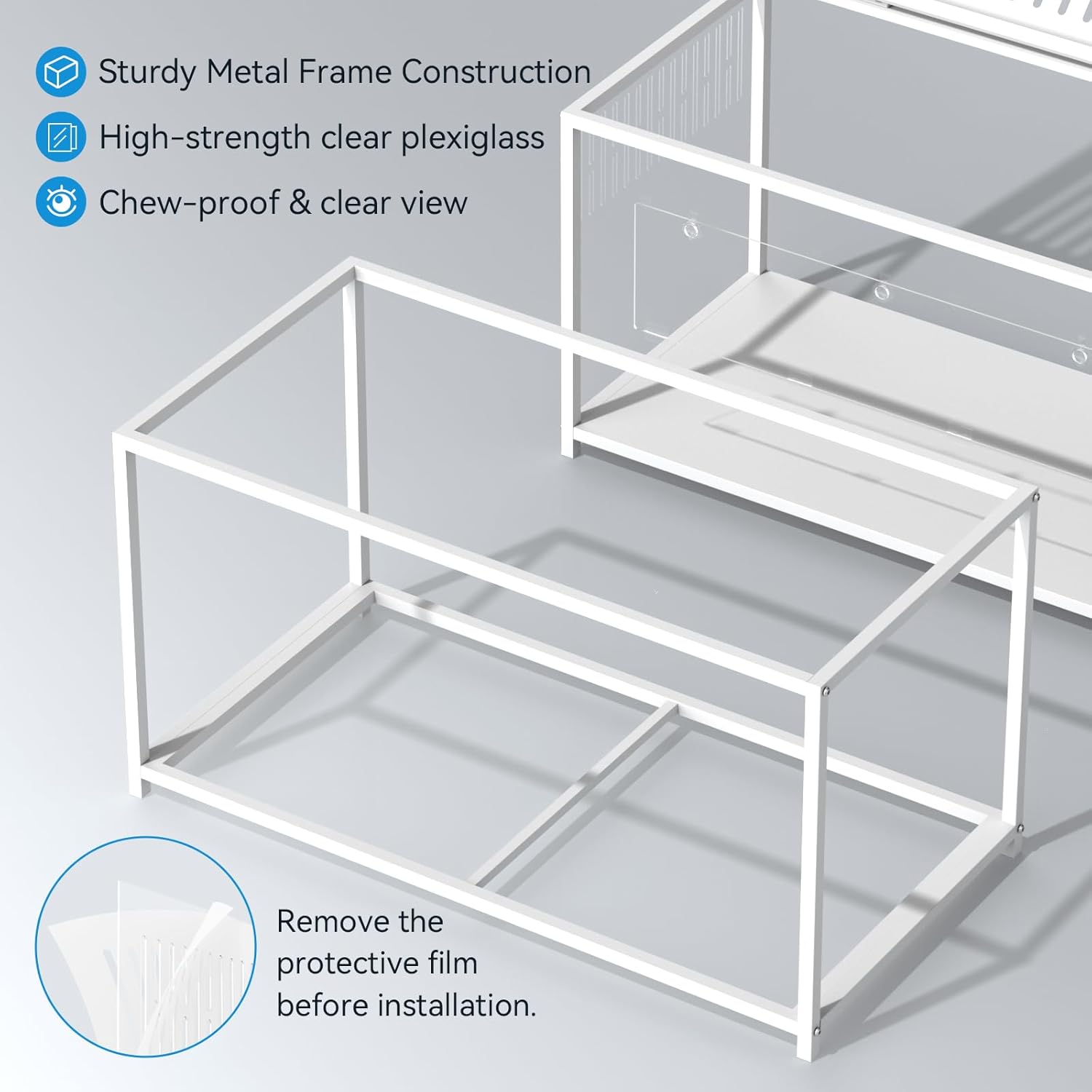 Chew-Proof & Heavy-Duty BuildEngineered with premium carbon steel, this cage withstands even the most persistent chewers. The robust frame supports up to 30kg (66 lbs), while thick acrylic panels offer crystal-clear 360° views—so you never miss those adorable moments.